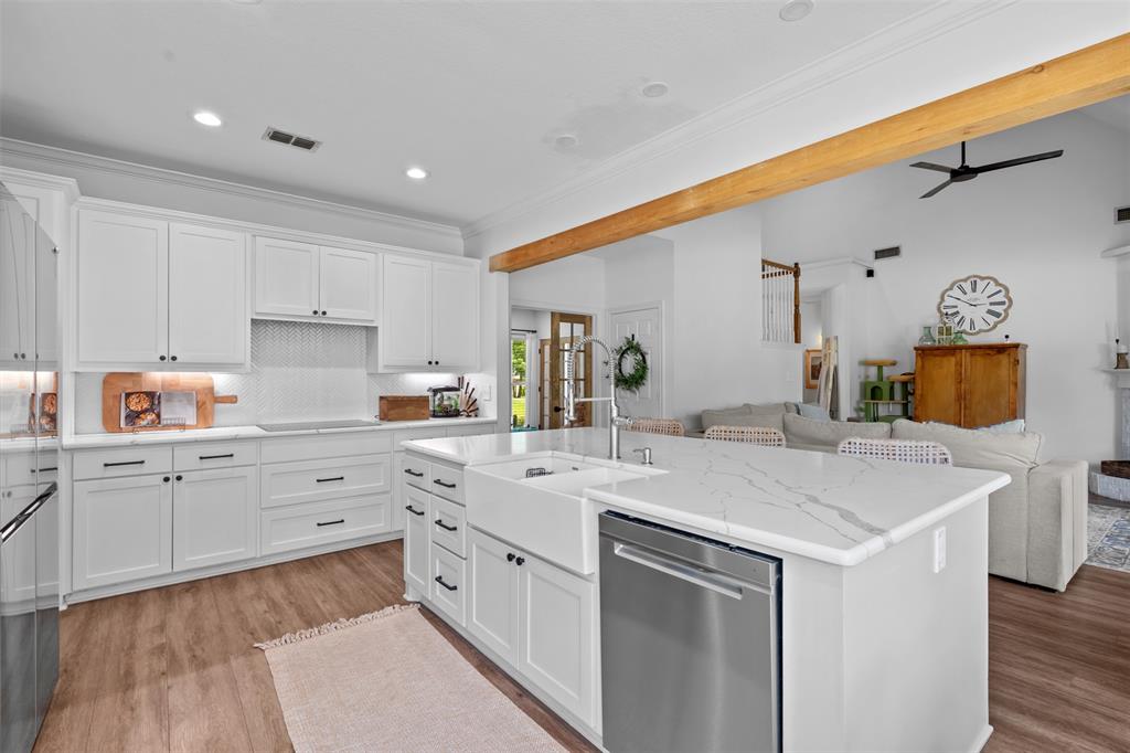 This spacious residence features an added fourth bedroom upstairs, a completely renovated kitchen with modern finishes, and updated bathrooms. Interior enhancements include recently painted walls, elegant LVP flooring throughout, and updated fixtures that elevate the home's style and comfort. Recently replaced Dishwasher, Refrigerator (will convey with home), Hot Water heater, HVAC system and Roof.