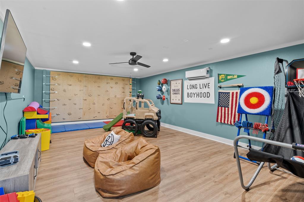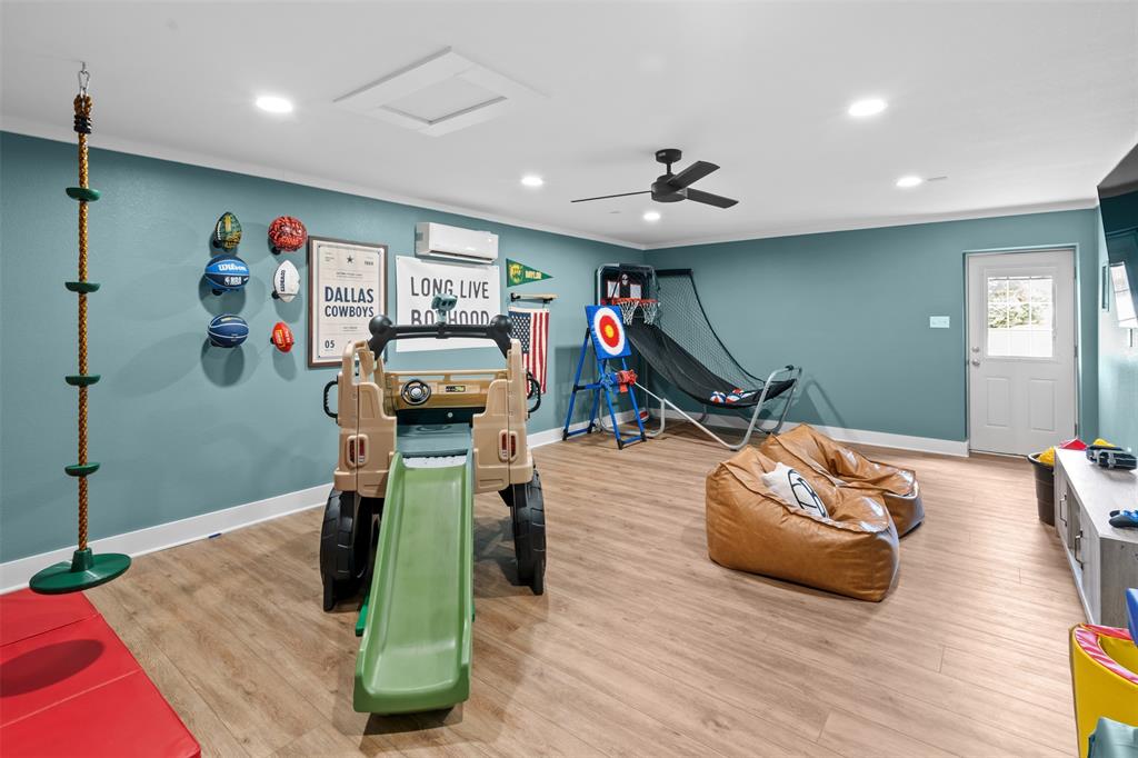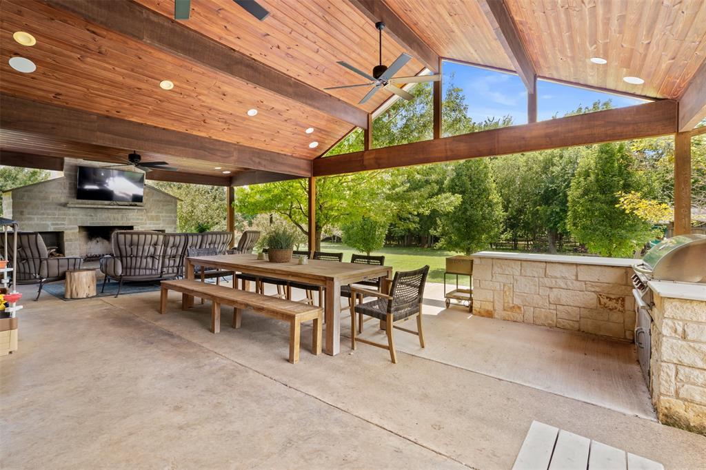The impressive covered outdoor patio is ideal for both relaxing and entertaining, featuring two mounted TVs (conveys with home), a built-in fireplace, and a fully equipped BBQ area. A versatile outdoor building—complete with heating and air conditioning—is currently used as a children's playroom and includes a built-in climbing wall (conveys with the home). The structure also offers a separate storage area, perfect for gardening tools or additional storage needs. OVER $200,000 IN UPDATES.