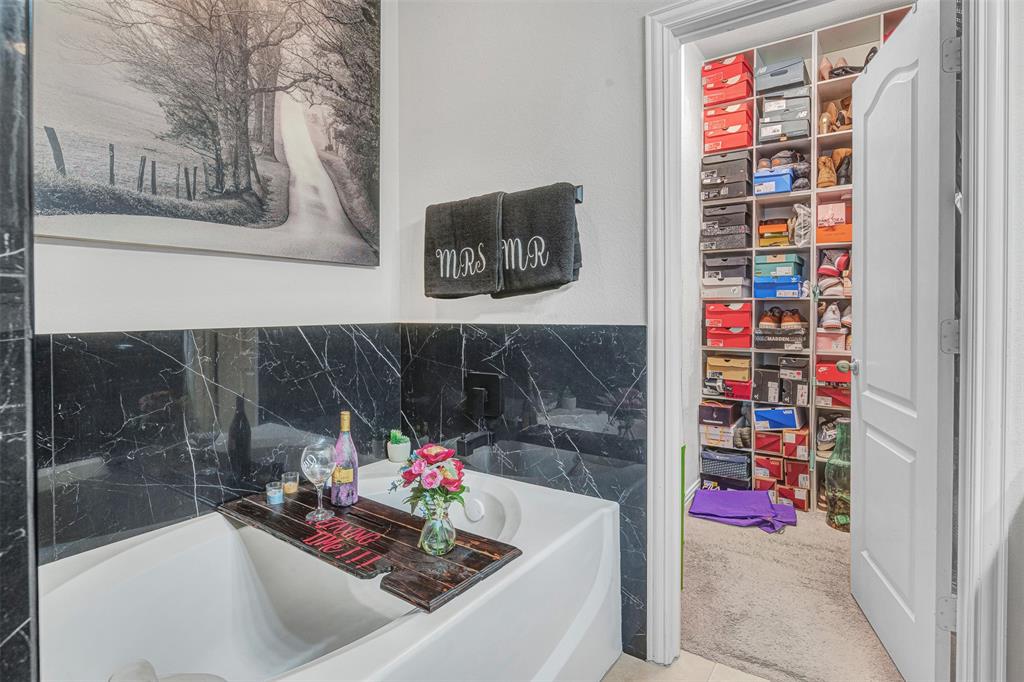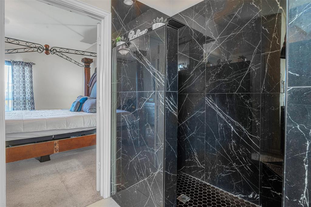The luxury primary suite offers a serene retreat, highlighted by an updated walk-in shower with elegant finishes that elevate your daily routine. Upstairs, enjoy a versatile game room or second living area, ideal for a home office, playroom, or media space. One of the standout features of this home is the newly enclosed back patio, thoughtfully designed for entertaining and relaxation. Whether you're hosting guests or enjoying a quiet evening, you'll love the built-in grill and the additional outdoor living space—perfect for Texas evenings year-round.