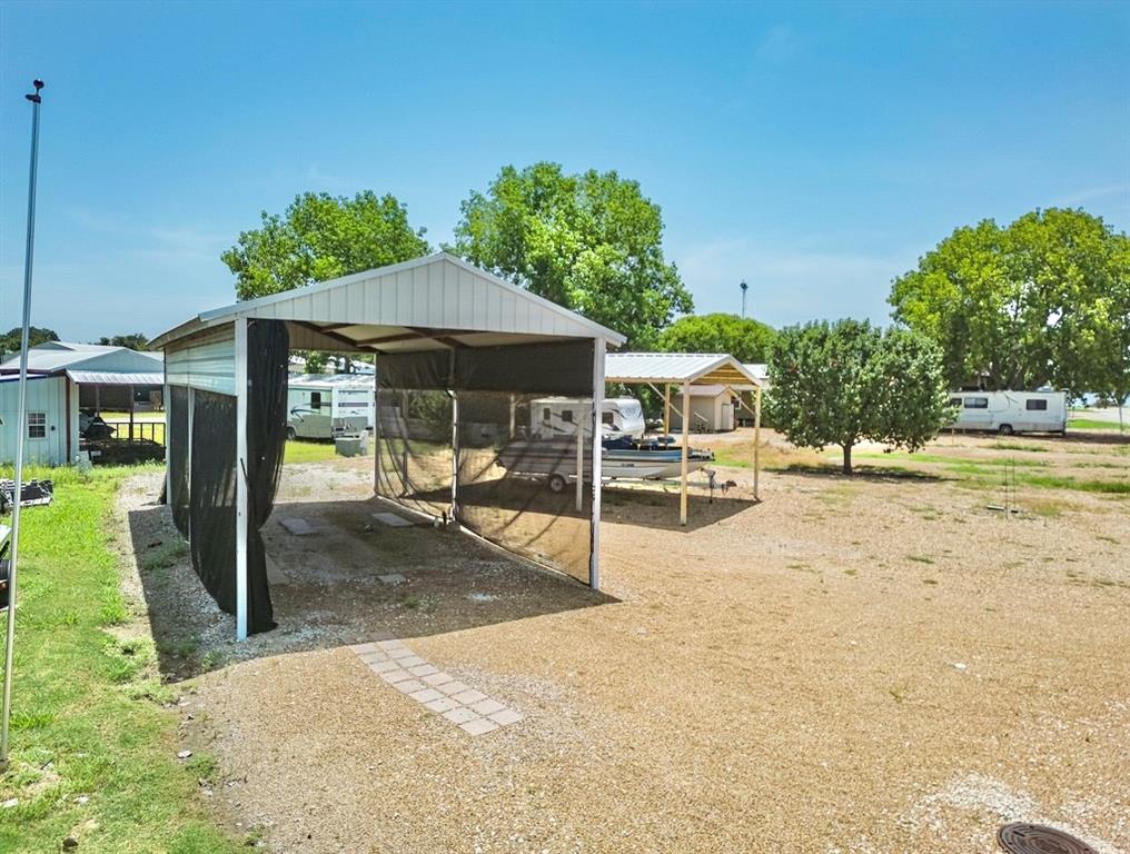 Enjoy peace of mind with gated access, plus community perks like a private boat ramp, clubhouse, pool, onsite laundry, and outdoor fun with horseshoes, washers, and a shaded picnic area. Two steel awnings offer protection and comfort, with gravel surfaces to reduce dust and a shaded RV carport with screens to help keep cool during those hot Texas afternoons.