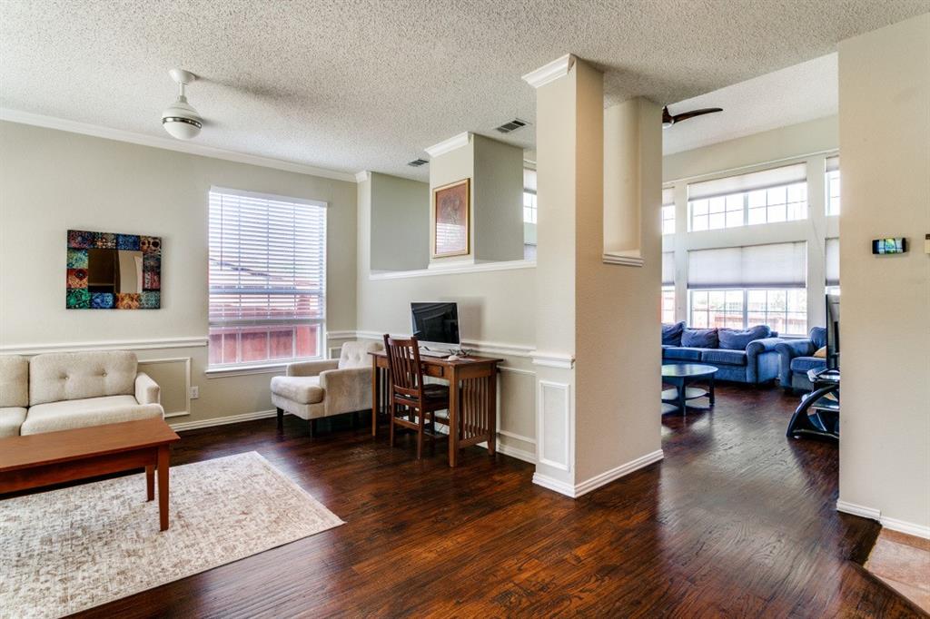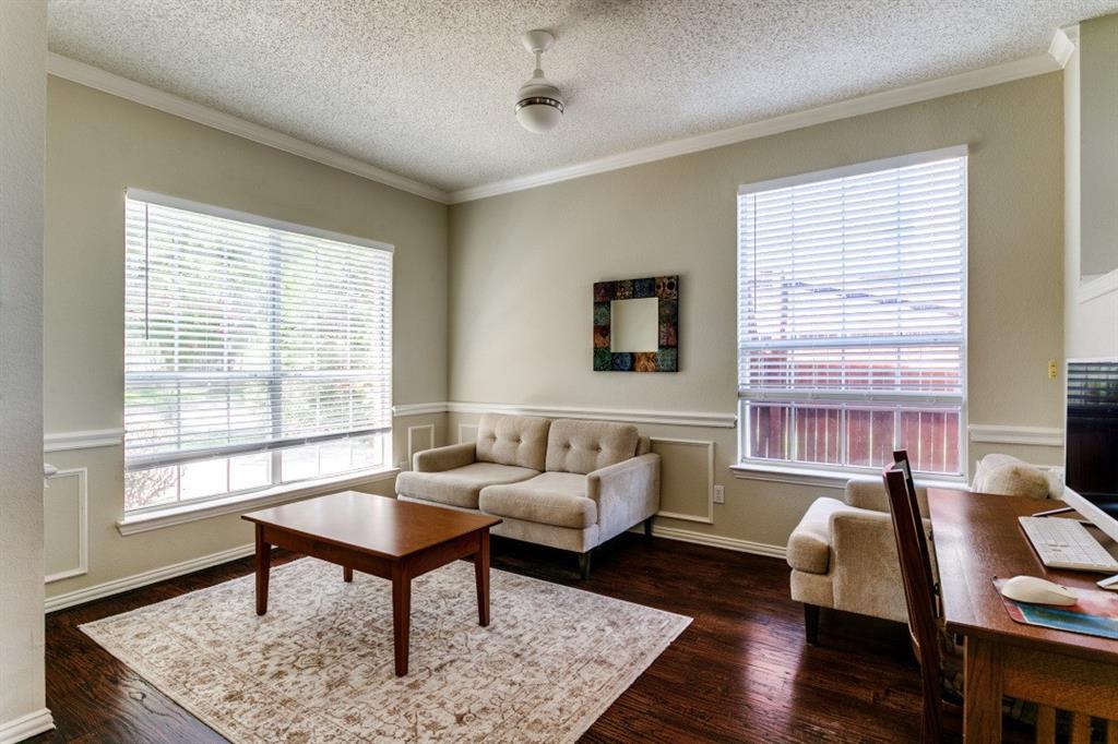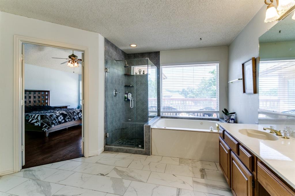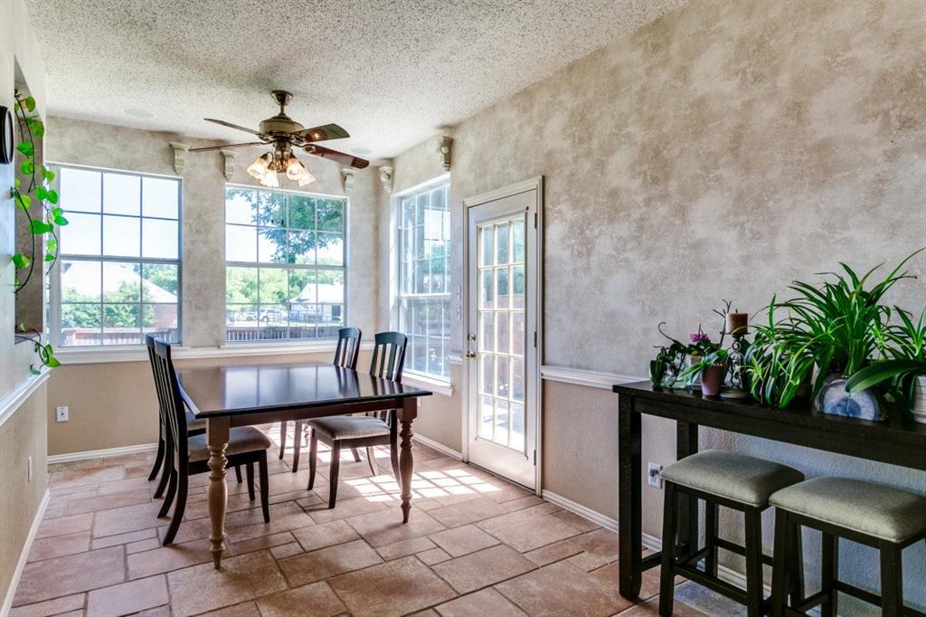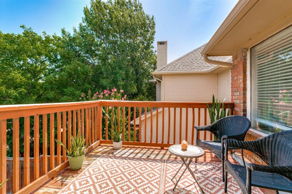 Sitting area in primary suite, a true sanctuary boasting a private balcony, Primary bathroom is enhanced with walk-in closet, double sinks, and a spa-like bathroom with a separate tub and shower. Ceramic tile in all wet areas adds durability and easy maintenance. Additional sunroom in the breakfast nook is not part of the original home. Enjoy the outdoors with access to scenic walking and biking trails in the neighborhood. Fantastic location in the Coppell ISD, this home checks all the boxes.