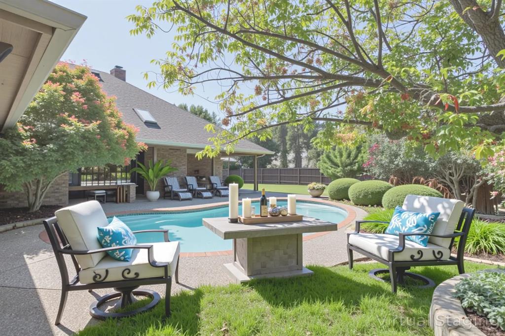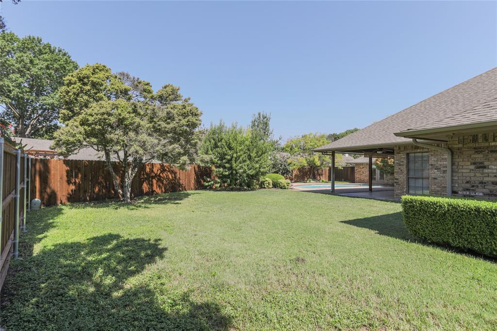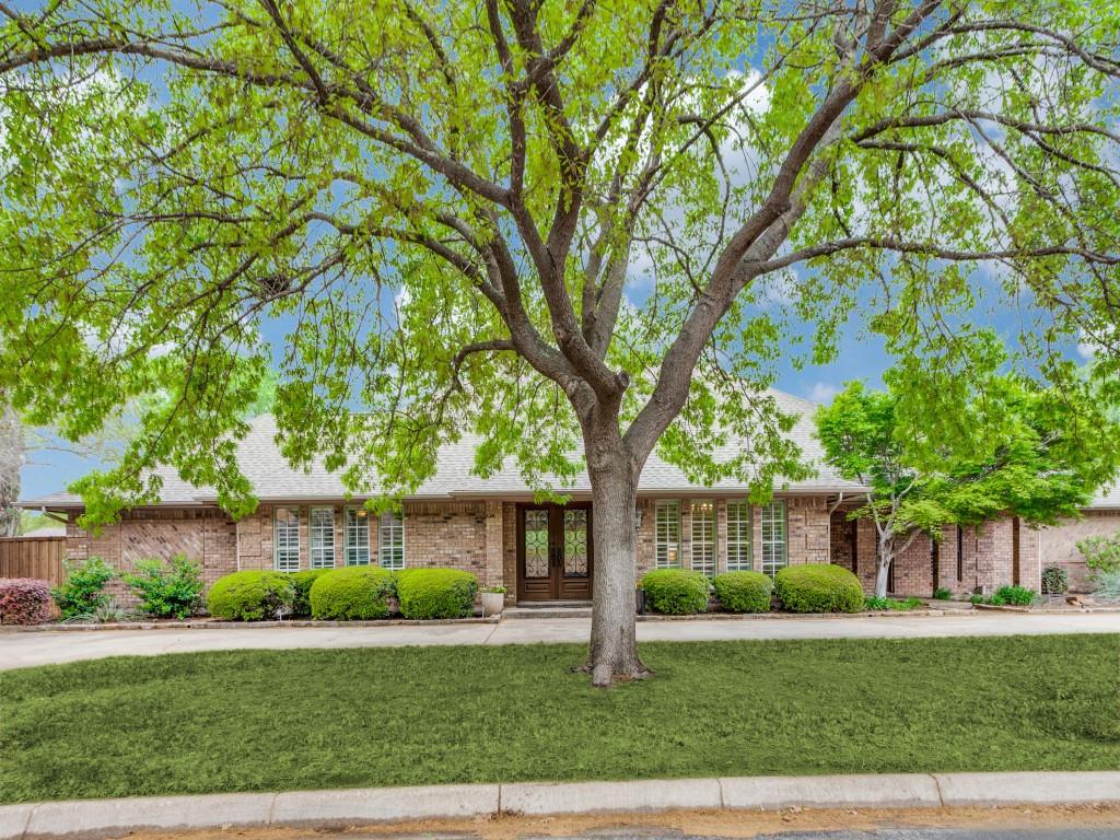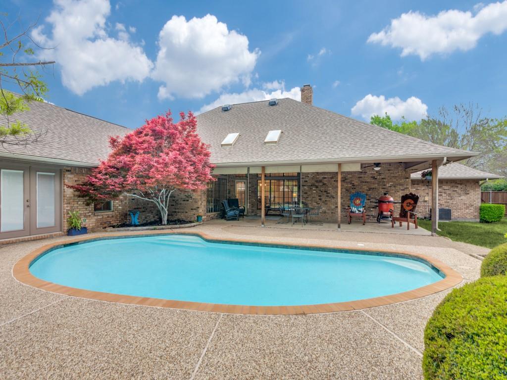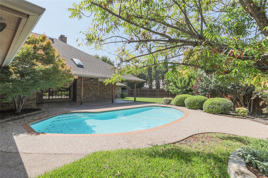 Classic and timeless, custom built 4 bedroom, 3.5-bath home in highly sought after neighborhood of Meadows West. This spacious single story layout features 2 large living areas, formal dining, breakfast, and a flex space used as a music alcove with floor-to-ceiling custom shelving.The main living area offers views of the backyard and pool, a fireplace, built-in shelving, and wet bar. The oversized owner’s suite includes a sitting area, access to the patio and pool, and ensuite bath. The kitchen has granite countertops, white cabinets, double ovens, a desk area, and a custom pantry. Architectural details throughout include plantation shutters, tray ceilings, and a neutral color palette. Back yard has a spacious covered patio, sparkling pool, lush landscaping. Don't miss the charming front patio with kitchen access. Additional highlights: circle drive, gated extended driveway, 2 car garage and 2 car covered carport. Located near Trinity Trails with easy access to hiking and biking paths.