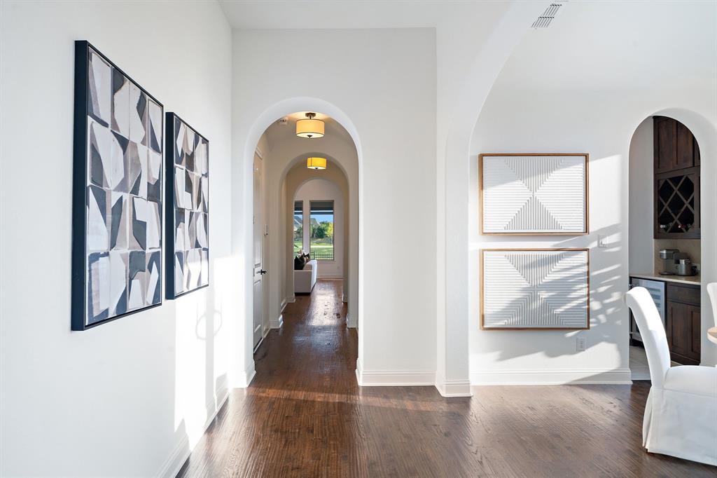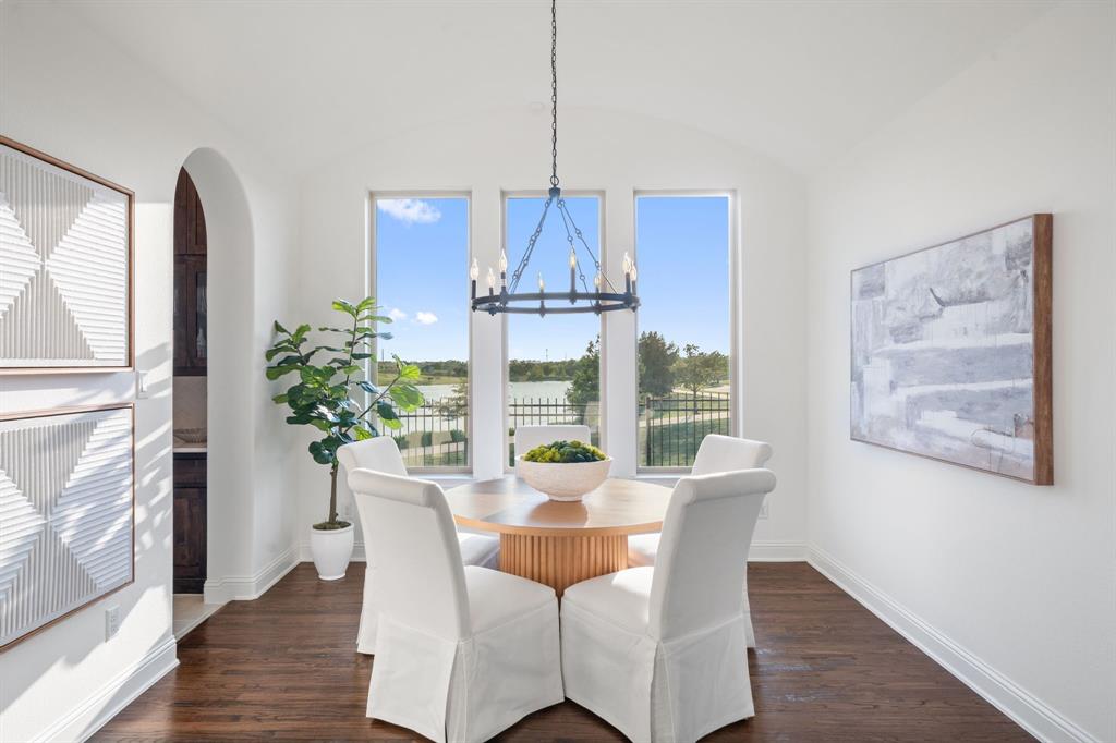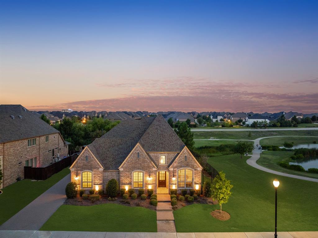 A Huntington-built, single-story gem nestled in the heart of Windsong Ranch, Prosper’s premier master planned community. This home sits on a prime corner lot, private lot surrounded by lush HOA green space and overlooks a serene, fully stocked lake, offering both tranquility and natural beauty. Step inside to discover rich hardwood floors that flow throughout the open-concept layout, complemented by abundant natural light flooding through well placed windows. The seamless connection between kitchen, living, and dining areas creates an inviting setting for everyday living and effortless entertaining. Pairing the comfort of one-level living with all the perks of an upscale resort-style neighborhood. With no rear neighbors and private water views, it’s an ideal retreat for anyone seeking elegance, ease, and community connection.