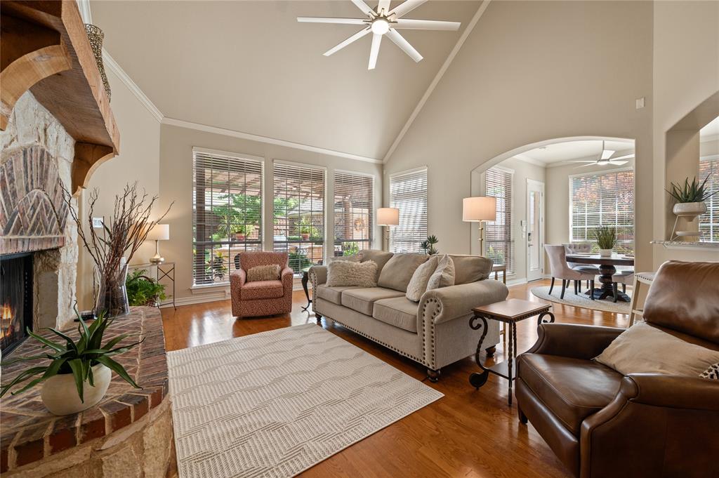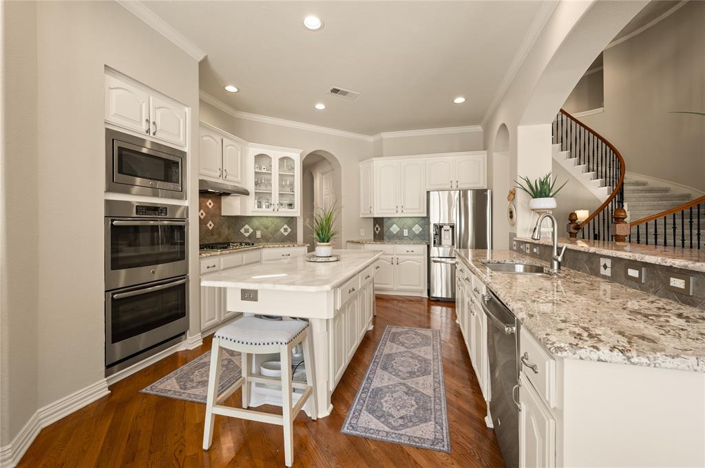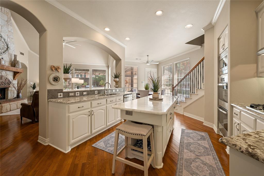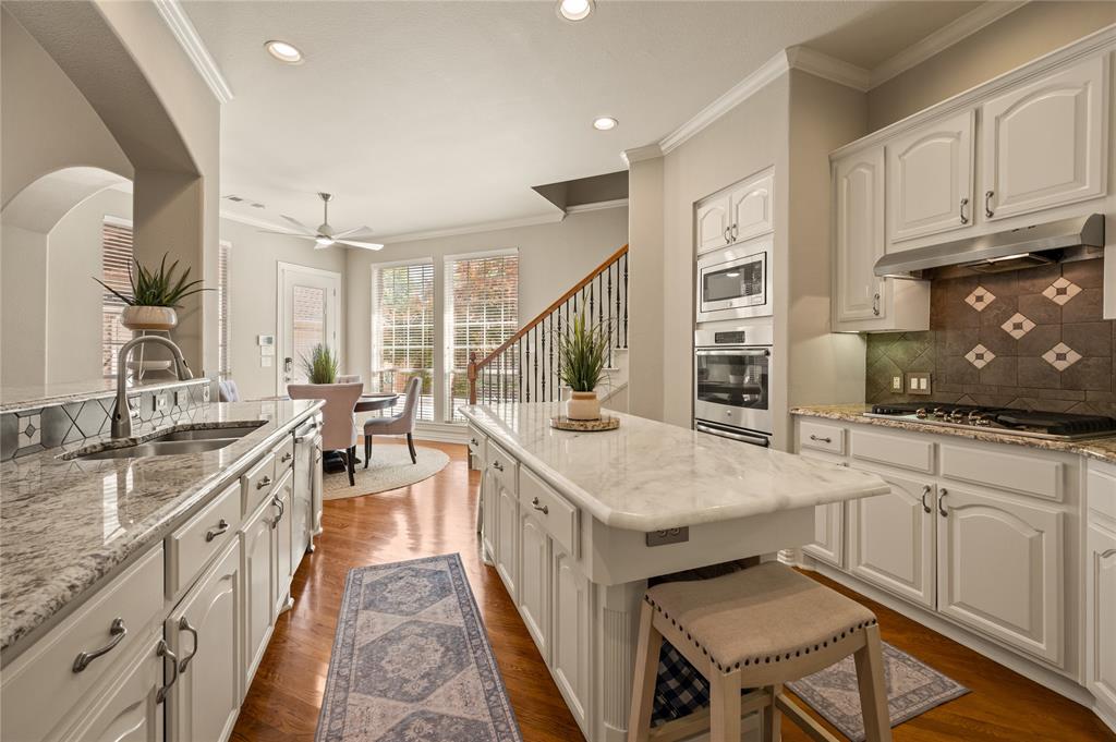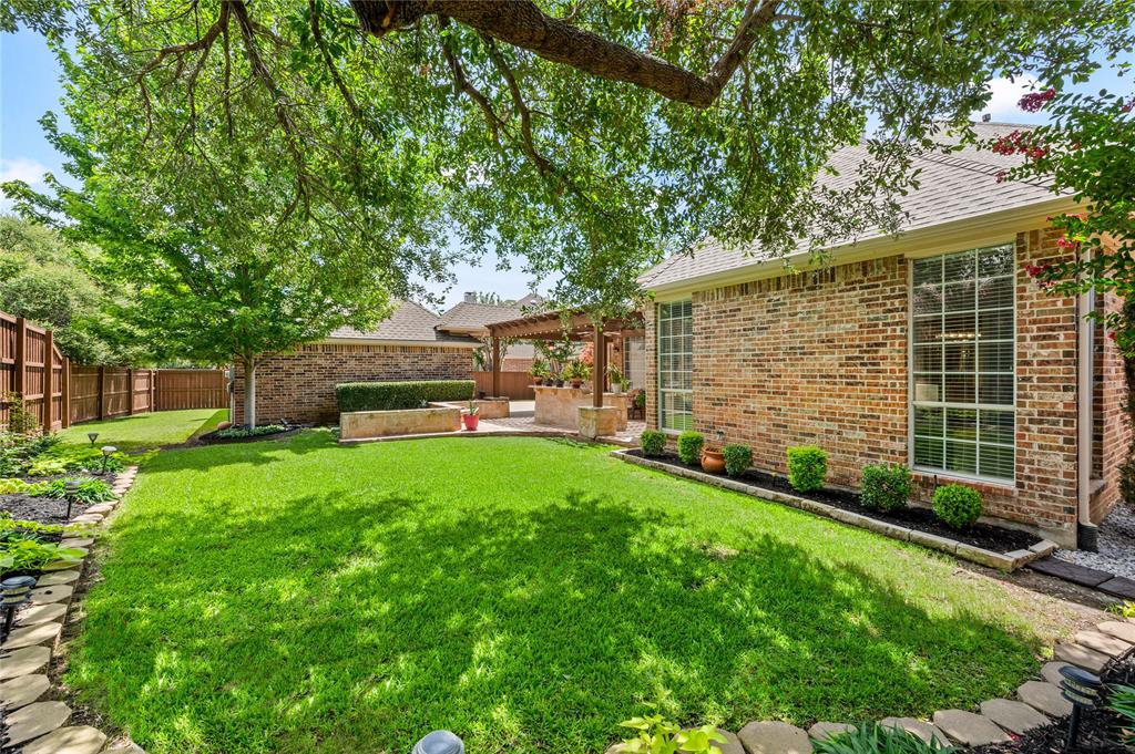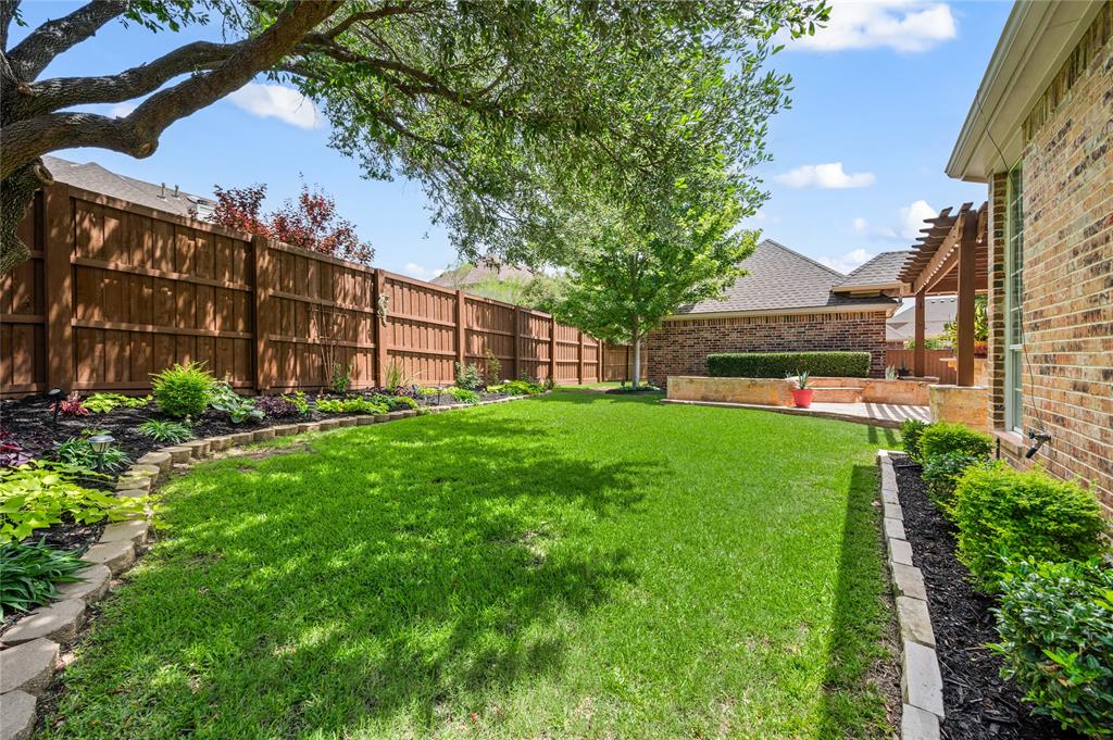 Step outside to enjoy Texas living at its finest—an extended pergola-covered patio with a full outdoor kitchen, plus a covered lounging area and a beautifully manicured yard designed for both entertaining and everyday enjoyment.