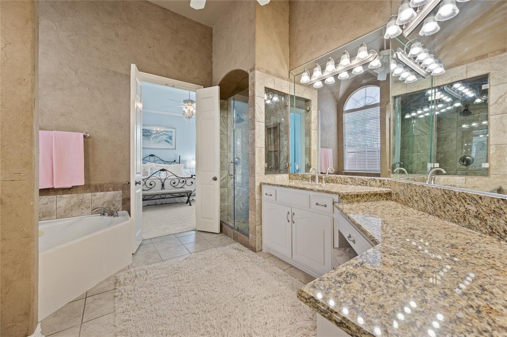 The main floor also features a guest suite with full bath, and a serene primary retreat with a bay window sitting area, spa-like ensuite with dual vanities, garden tub, walk-in shower, and an expansive closet. Upstairs offers a sprawling game room, three well-appointed bedrooms, and two additional full bathrooms.