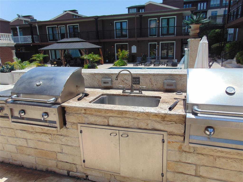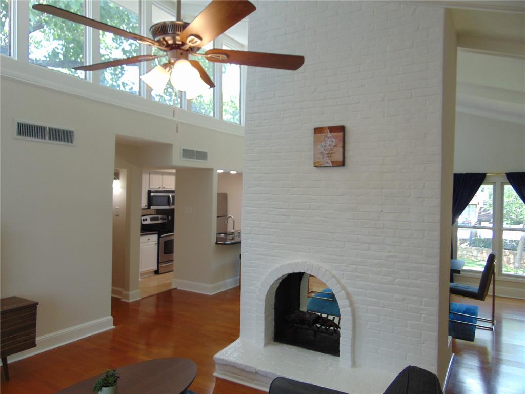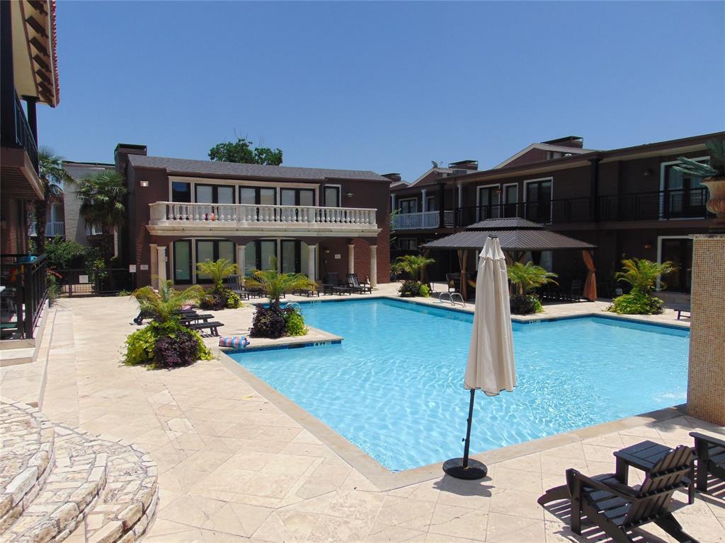 FRESHLY UPDATED AND SHOWS GREAT! New knock down texture throughout and freshly painted July 2025. New light fixtures. Light and inviting with a high vaulted ceiling in the living areas. Big transom windows flood the room with light. Feels like you are in your own Treehouse! OPPORTUNITY KNOCKS ON THIS ONE TOO....it is an estate and priced to sell. Resort style living outside with a massive pool, palm trees, ready to use grills, hot tubs and a gym. So close and convenient to the Katy trail and WR lake! Spacious living room has hardwood floors and a double-sided fireplace. Chef's kitchen has granite counters and SS appliances. Open plan is great for entertaining! Master suite has a c-fan, walk-in closet and opens to a balcony. Updated shower has subway tile and a travertine floor. Comes with Full-size stack WD. Quiet condo with no one above you. Comes with 2 covered reserved parking spaces 37 and 38. Convenient to restaurants and shopping but quietly tucked away. This property is an estate and can come with the furnishings if the buyer wants.