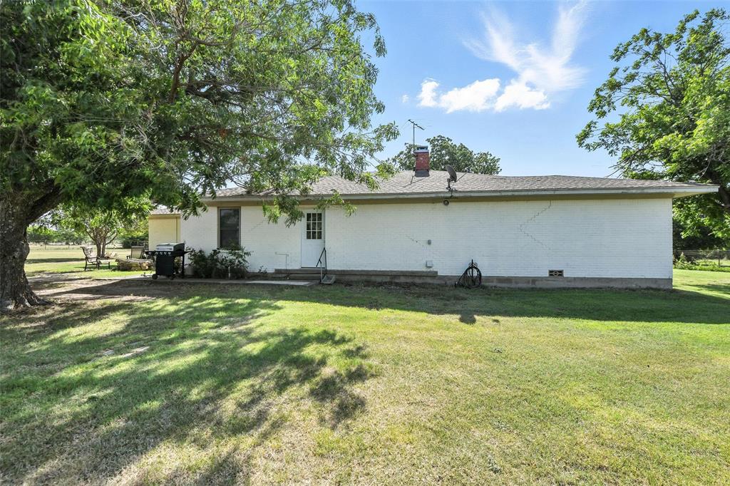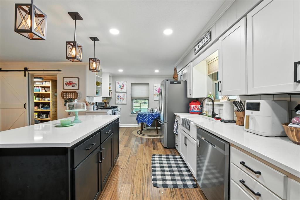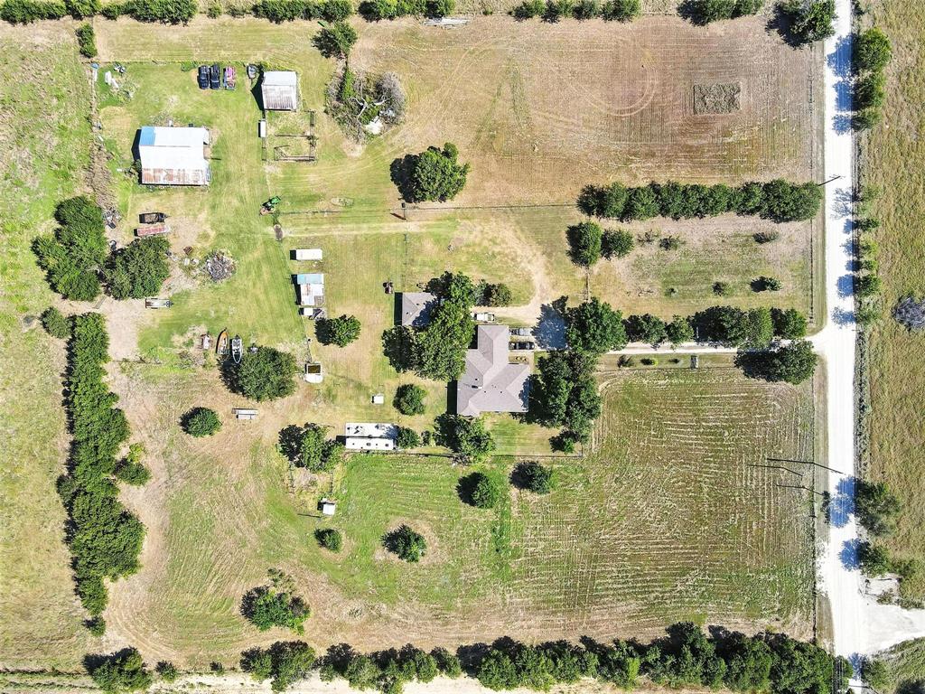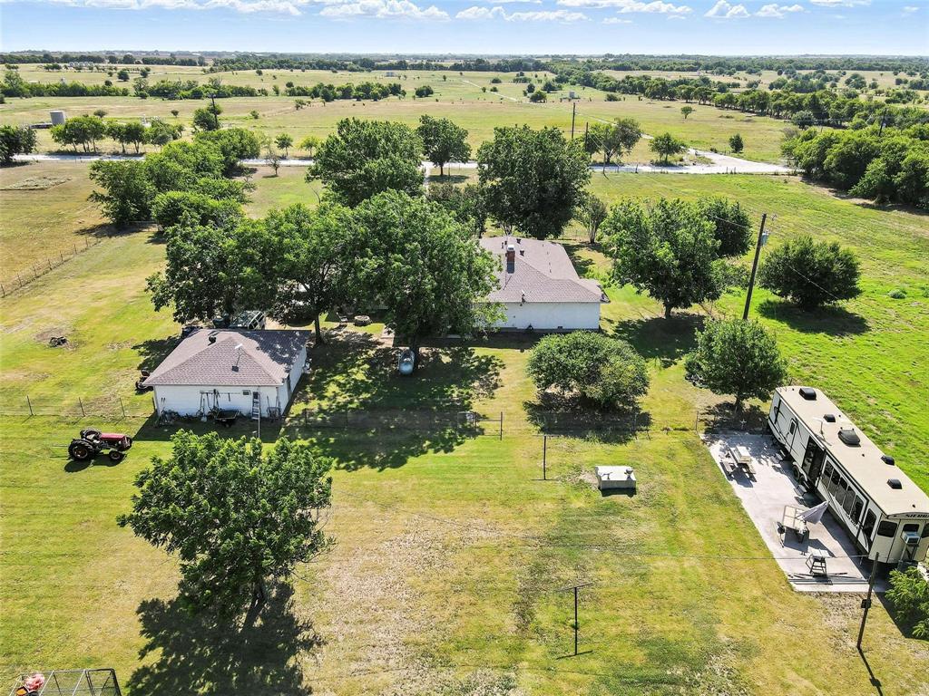 Welcome Home! This unique property on 10+ acres is fenced and cross fenced, and ready for new owners. The home has beautiful updates and is Ag exempt, so bring your chickens, cows, or horses. Inside features an open concept updated kitchen, dining room, and living room. Enjoy the modern kitchen with a farmhouse sink, large island, gas range, refrigerator, and double oven. Primary suite offers plenty of space, including a large walk-in shower. Outside features a storm shelter, RV pad with utilities, separate office building, chicken coop, and 2 barns. Garage is currently being used as a workshop and office, but can easily be converted back to a traditional garage. This home has everything, with room for even more!