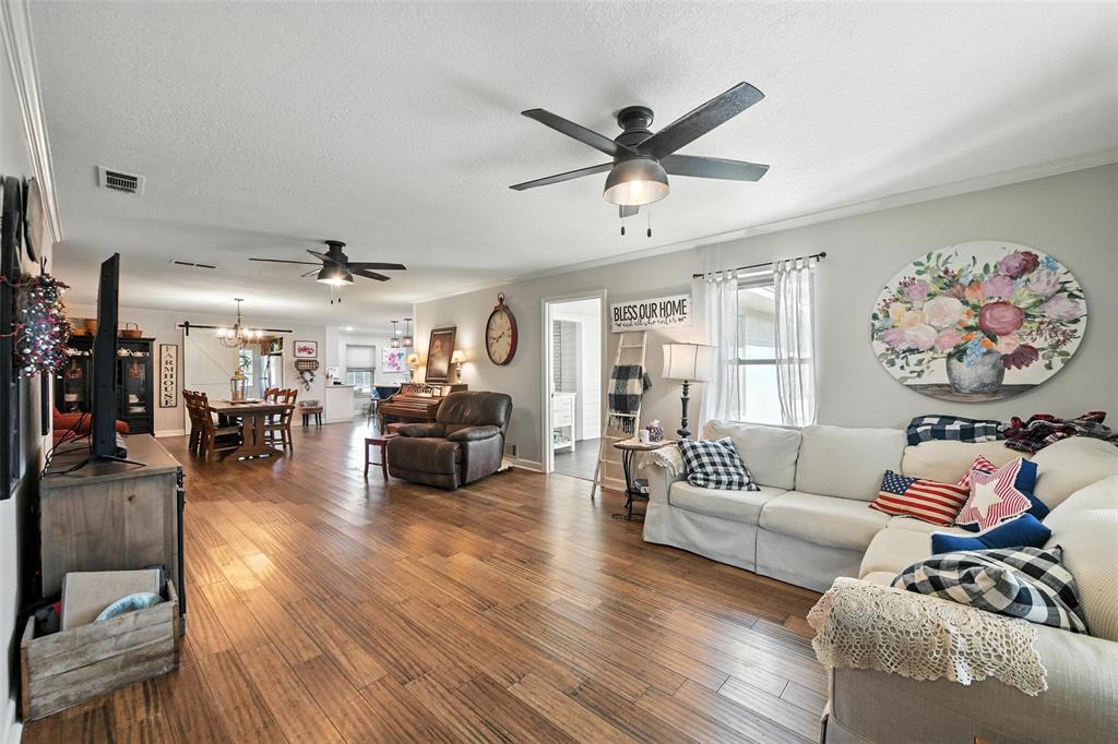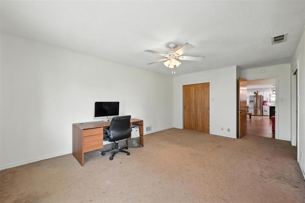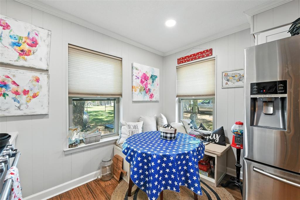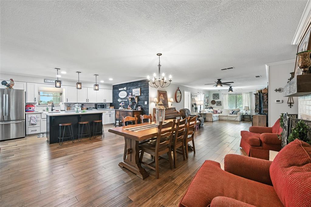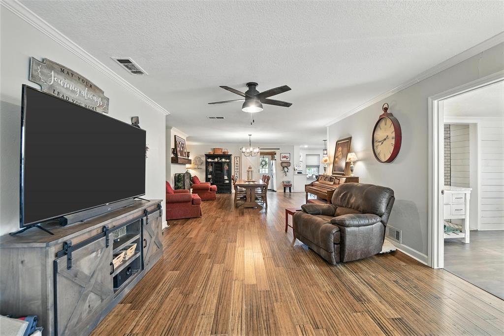 Welcome Home! This unique property on 10+ acres is fenced and cross fenced, and ready for new owners. The home has beautiful updates and is Ag exempt, so bring your chickens, cows, or horses. Inside features an open concept updated kitchen, dining room, and living room. Enjoy the modern kitchen with a farmhouse sink, large island, gas range, refrigerator, and double oven. Primary suite offers plenty of space, including a large walk-in shower. Outside features a storm shelter, RV pad with utilities, separate office building, chicken coop, and 2 barns. Garage is currently being used as a workshop and office, but can easily be converted back to a traditional garage. This home has everything, with room for even more!