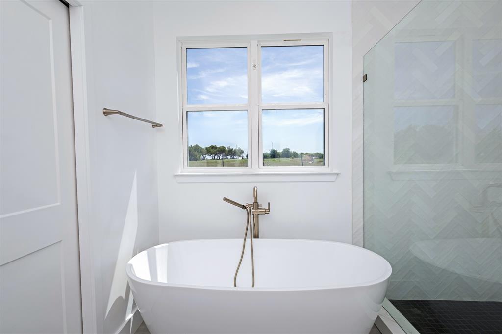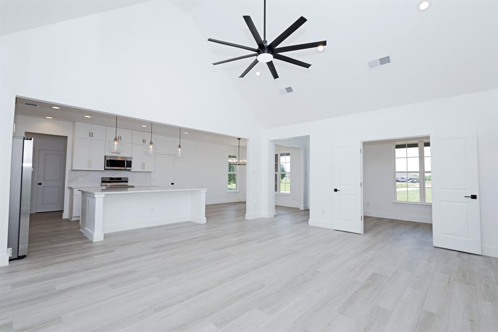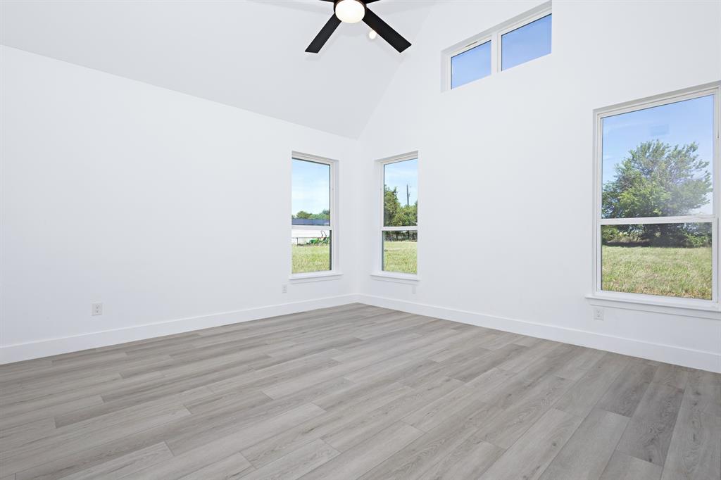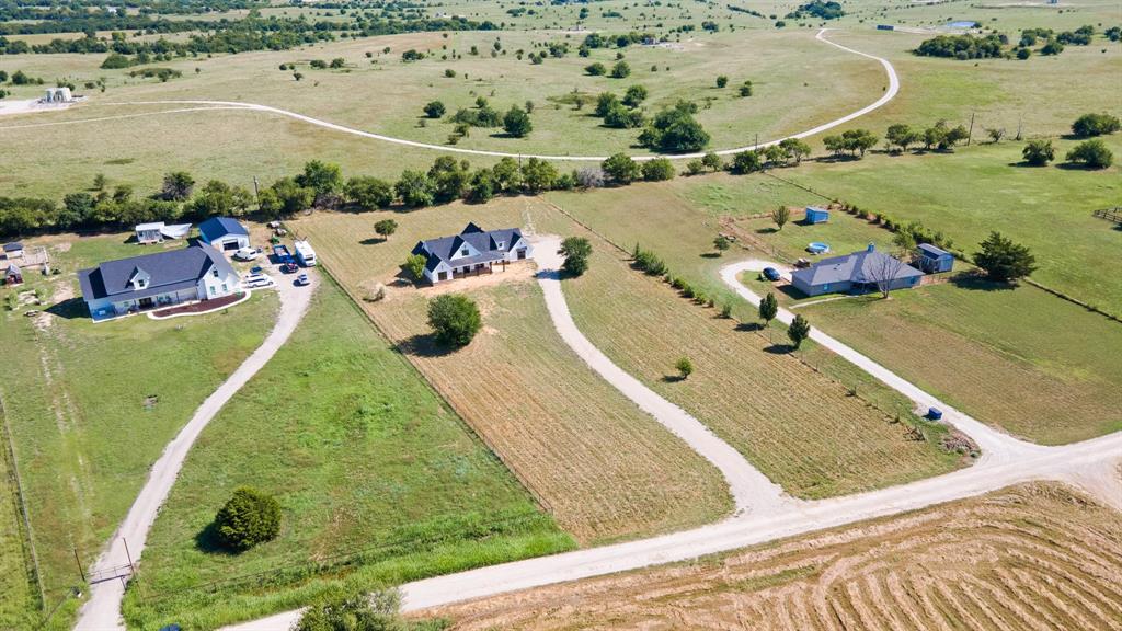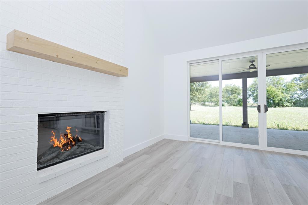 leads to an open floor plan with large windows and doors combined with 17' vaulted ceilings gives a very light feel! Plumbing, appliances, air conditioning systems, roof, and more are all new, offering peace of mind with warranties on new construction electrical and air conditioning! The kitchen features custom cabinets with Quartz counter tops and matching back splash. An island in the kitchen leads into a living room that features an electric fireplace with remote control. You can find Soho Gloss White Herringbone tile in baths. Enter the mud room from the garage and leave your jacket on the built in cabinets before taking your groceries to the walk-in pantry. Waterproof and Durable Mohawk Vinyl wood plank flooring throughout. Catch a breeze under the ceiling fans that are throughout, including the back patio. Relax in the free standing tub or in the custom frame-less shower glass in the master bath. Store all of the extras in the full attic. Gravel drive leads you through the mature grass and shrubs to a 2 car garage with custom doors by Custom door by Tolbert with storage and parking. 45 minutes to Fort Worth or an hour drive to Dallas. Enjoy the sunsets on the front or back porches!