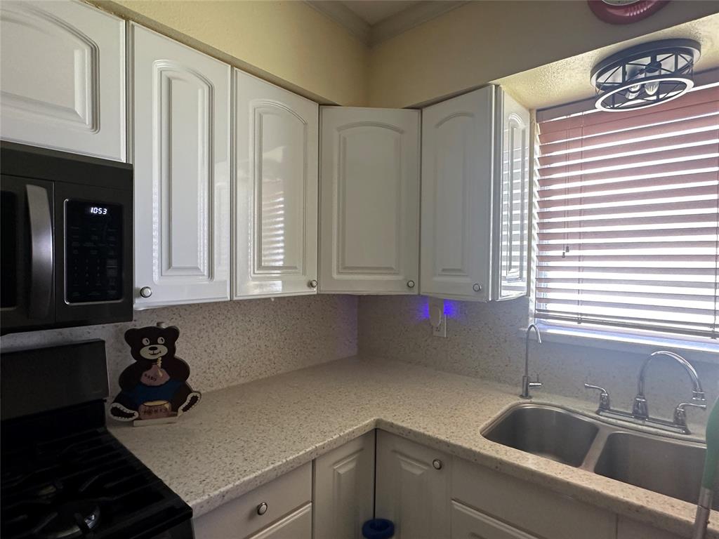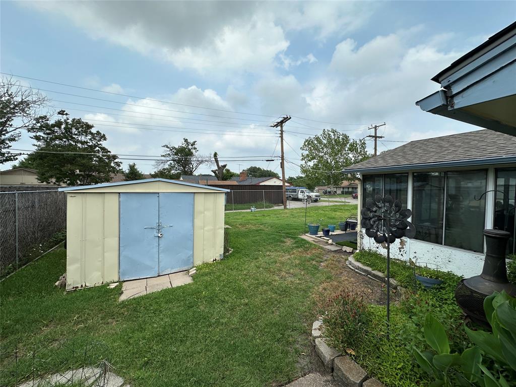 Corner lot! Charming home ready to go! 3 nice sized bedrooms. 2 baths. Seller conveying some items with the property that they couldn’t take with them. Appliances are stainless steel with built in Microwave and plenty of counter space. Back patio is enclosed with lots of windows. New ceiling fans that provide great lighting as well. Alarm system is in place with cameras. Updated flooring waterproof wood look laminate. Primary bedroom features in suite bathroom. Living room has a nice place for either table or separate sitting or study sitting space. Property is close to shopping dining and schools. Walking distance to McDonald Middle School. 8 blocks from Tosch Elementary and 3 from Mesquite Academy. Storage shed in backyard with 8 foot chainlink fence. Solar Panels are paid off so save some money on your electricity.