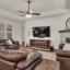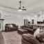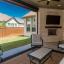 The open-concept living room boasts a built-in surround sound system that extends to the covered rear patio, creating the ultimate indoor-outdoor entertainment experience. Enjoy relaxing on the rear patio, featuring epoxy flooring, an electric retractable screen, and a gas fireplace—perfect for year-round enjoyment. The home also features a welcoming front terrace for morning coffee or evening unwinding.