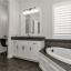 The spacious master suite is a true retreat, offering a garden tub, walk-in shower, separate vanity sinks, a dedicated vanity space, and a custom walk-in closet. Throughout the home, you’ll find 5-inch shutters that add timeless elegance and natural light control.