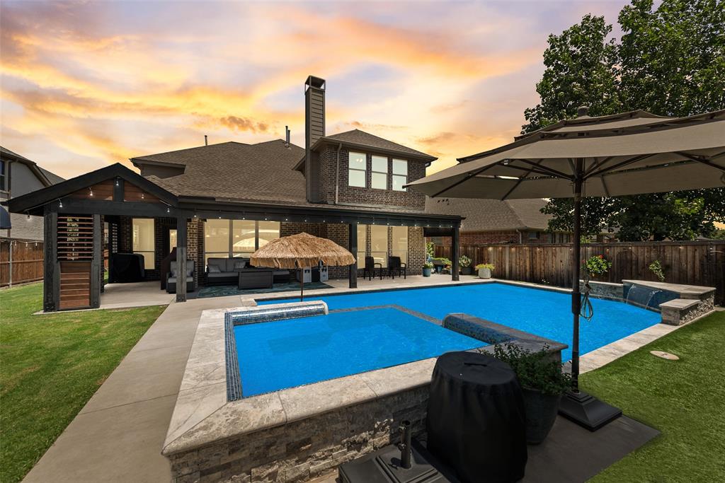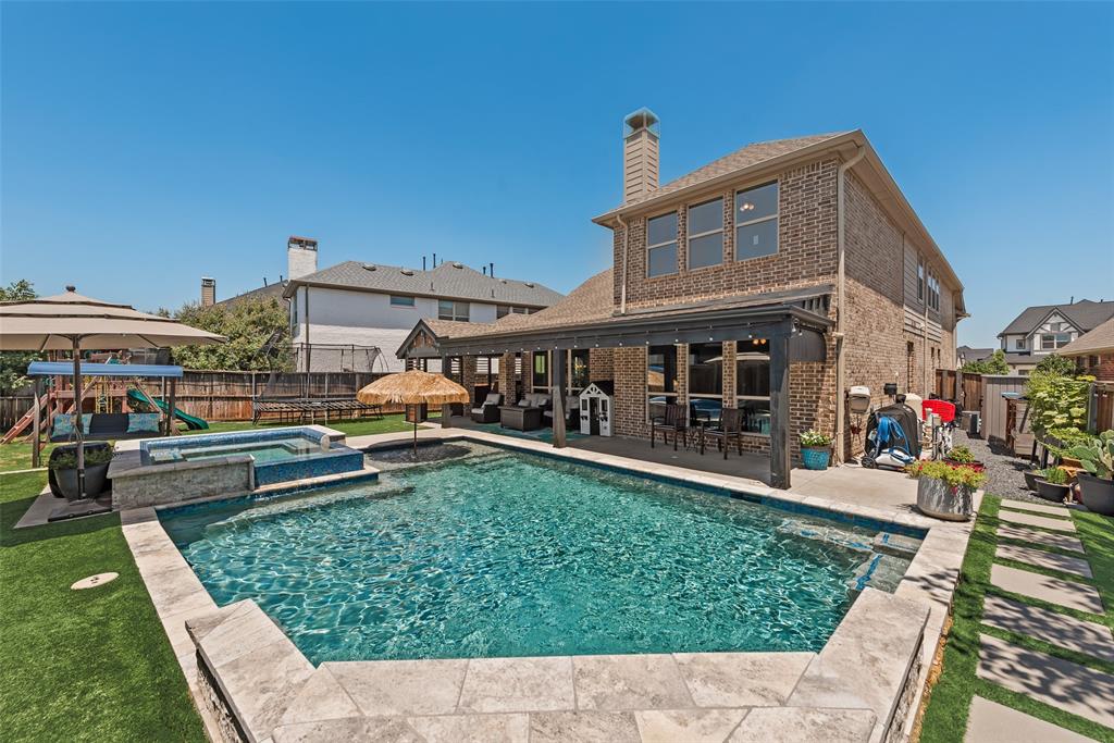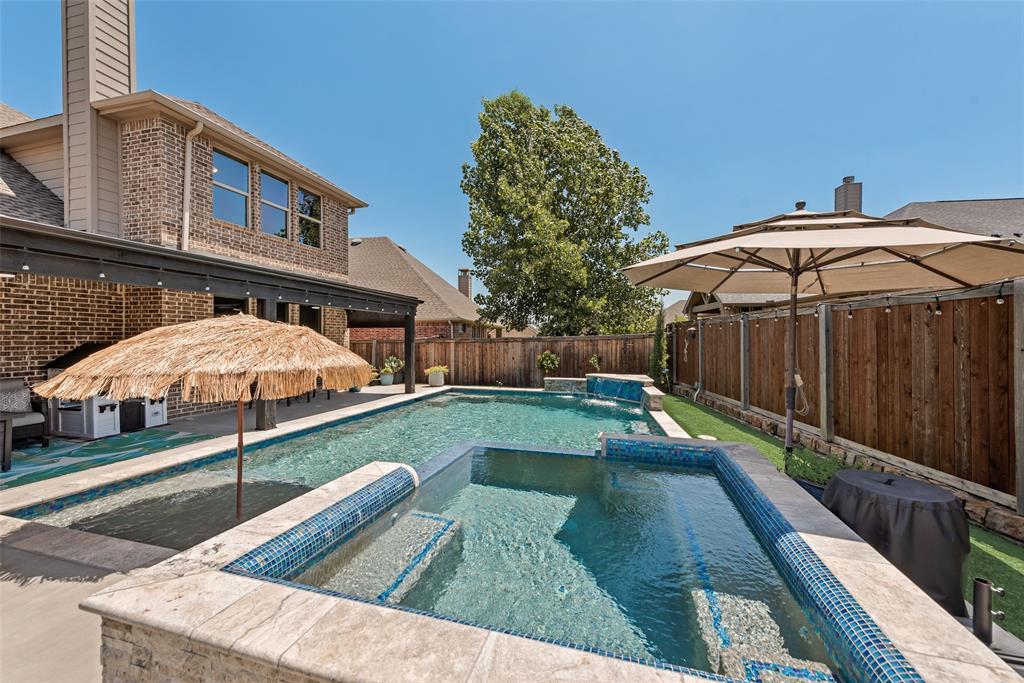 Welcome to this stunning 5-bedroom, 4-bath home nestled in the heart of Celina’s premier master-planned community, Light Farms. Designed for both comfort and entertaining, this home features an open-concept layout, high ceilings, abundance of natural light and stylish finishes throughout. The chef’s kitchen flows into a spacious living area—perfect for everyday life and entertaining. Step into your private backyard paradise where a sparkling pool and Texas-size hot tub combo await— wrap around custom covered porch thats perfect for relaxing or hosting unforgettable gatherings year-round. Enjoy access to Light Farms' unmatched amenities including miles of trails, lakes, parks, tennis courts, and top-rated onsite elementary Prosper ISD schools. Don’t miss this opportunity to own a true gem in Celina and live the lifestyle you’ve been dreaming of!
