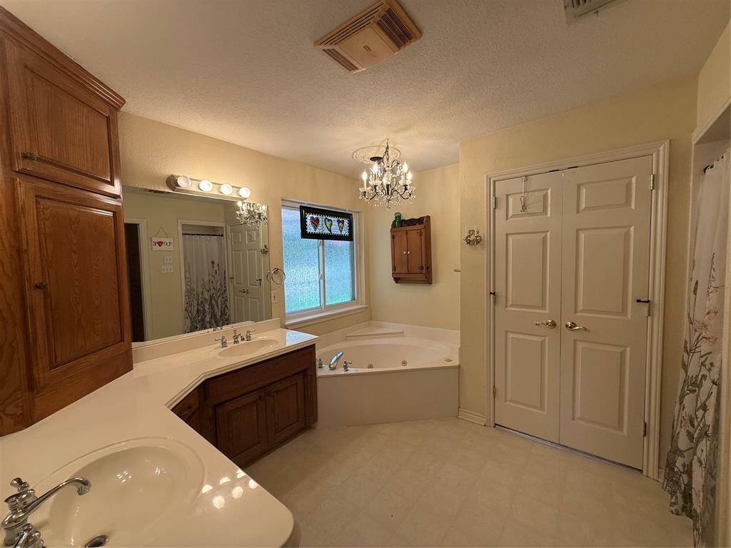 The split floor plan provides ideal privacy for families or guests. The spacious primary suite offers a cozy seating area, dual vanities, a jetted tub, separate shower, and a walk-in closet—creating a true retreat at the end of the day.