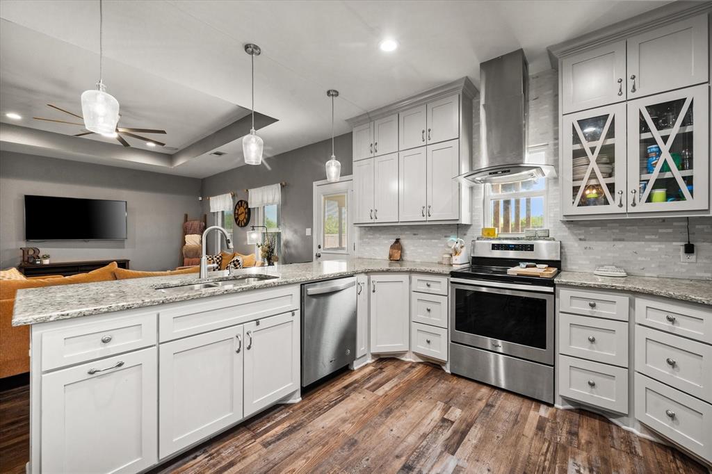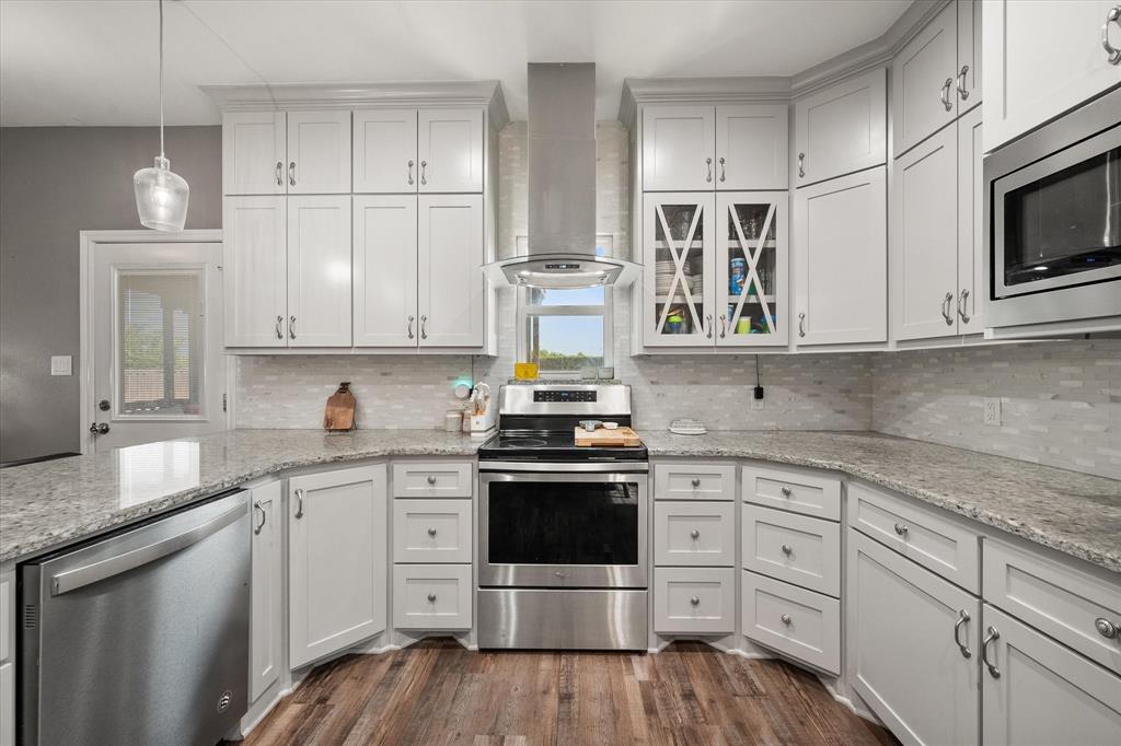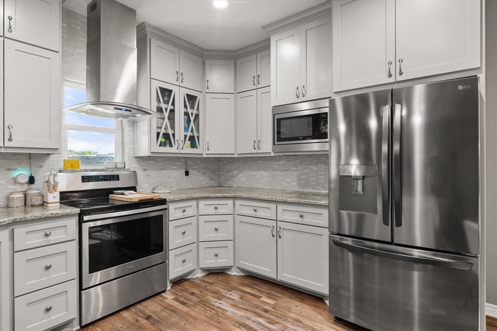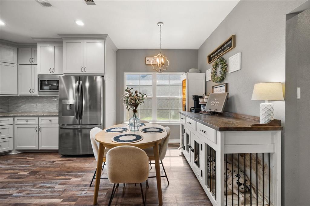 Inside, you’ll find a smart layout with three bedrooms, two bathrooms, and absolutely no carpet in sight. The kitchen offers sleek granite countertops, plenty of room to spread out, and a view into the living space that keeps everything connected. Whether you’re cooking, working from home, or just trying to keep up with life—this space works with you, not against you.