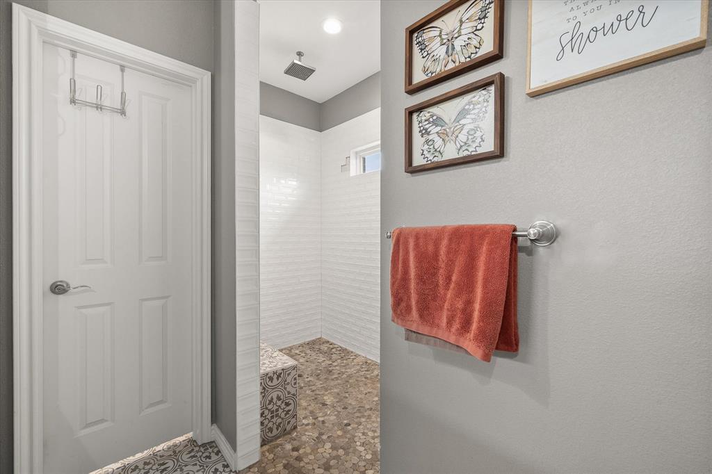 The primary suite delivers a standout feature: a walk-in rainfall shower that brings a spa-like feel without the spa-day prices. And when it’s time to relax? Step out to the covered back porch—perfect for quiet mornings, laid-back evenings, or anything in between.