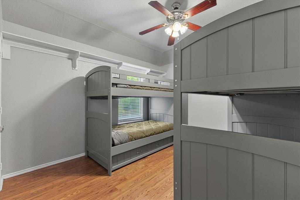 The primary suite is conveniently located downstairs with its own private ensuite for added privacy. Upstairs, you’ll find four more bedrooms split evenly on each side of the home with a shared full bath in the center—a practical layout for families, guests, or roommates. A second living area upstairs offers endless options: game room, home office, or media lounge.