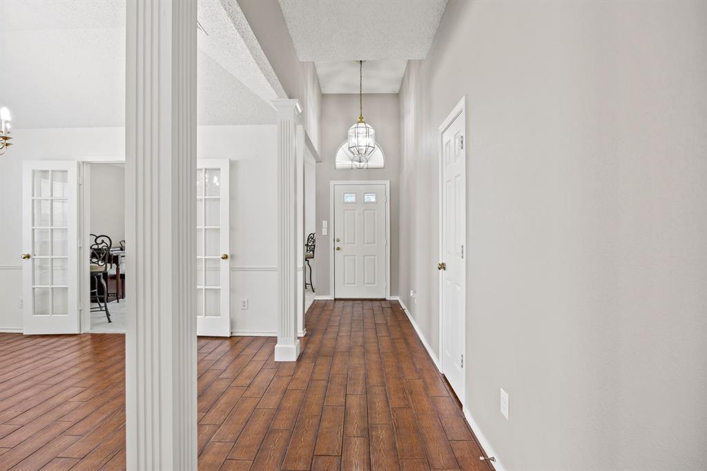 Inside, you’ll find a thoughtfully designed layout that includes a kitchen nook, a formal dining area with elegant French doors, and a cozy living space that flows effortlessly throughout the home. The property features a kitchen that opens up to the living area, creating a warm, connected atmosphere. A newly renovated primary suite with vaulted ceilings, fresh paint and flooring, and an expansive walk-in closet. An extra room at the front of the property provides flexibility—ideal for a home office, guest room, or additional sitting area. The separate laundry room and oversized garage offer both functionality and convenience. Recent updates add even more value, including a brand-new HVAC system installed in 2024 with a transferable warranty, along with a new dishwasher and garbage disposal in 2023. The garage door spring and motor were also replaced in 2020. Freshly painted interiors and updated finishes give this property a bright and modern feel. Don’t miss the opportunity to make this move-in-ready home your own!