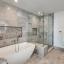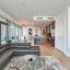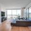 Engineered hardwood flooring flows throughout the living areas, adding warmth and continuity. Both bedrooms are framed by wraparound, full-height windows and offer en-suite marble bathrooms. The primary suite includes a custom walk-in closet, soaking tub, walk-in shower, and dual vanities.