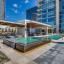 Residents enjoy concierge and valet service, a resort-style pool, outdoor lounges, a private wine lounge, and a state-of-the-art fitness center. Additional amenities include conference rooms, business spaces, a golf simulator lounge, pet spa, and landscaped green space.