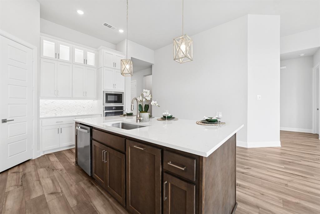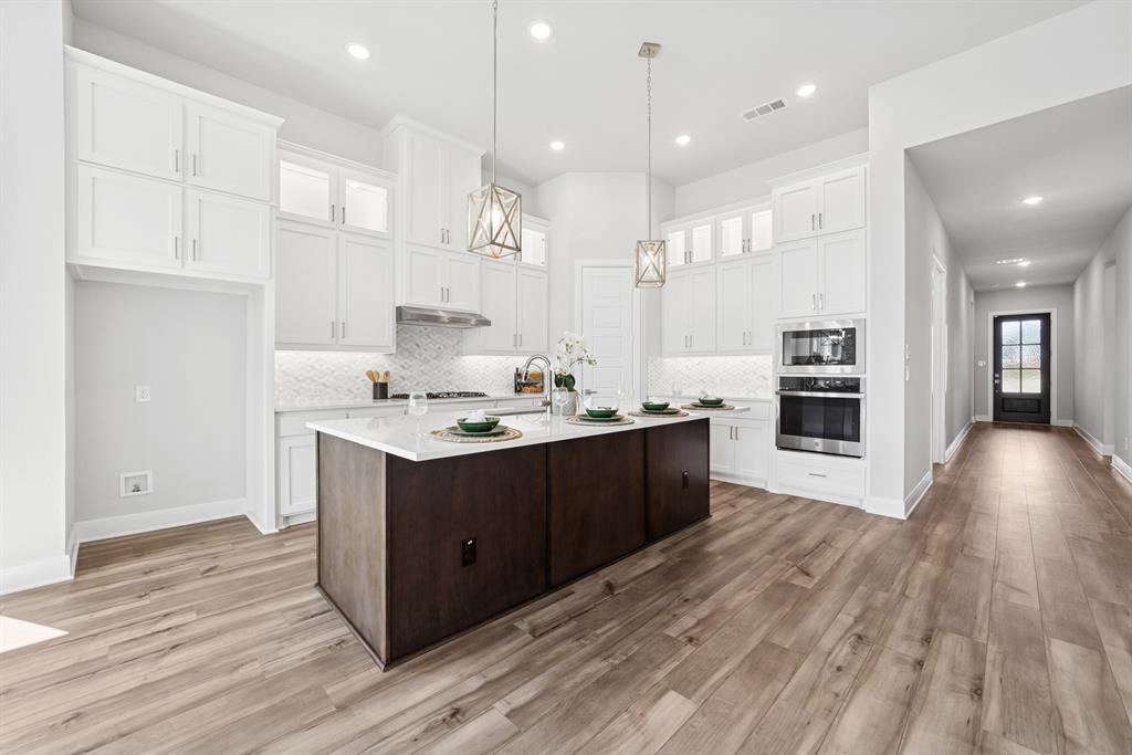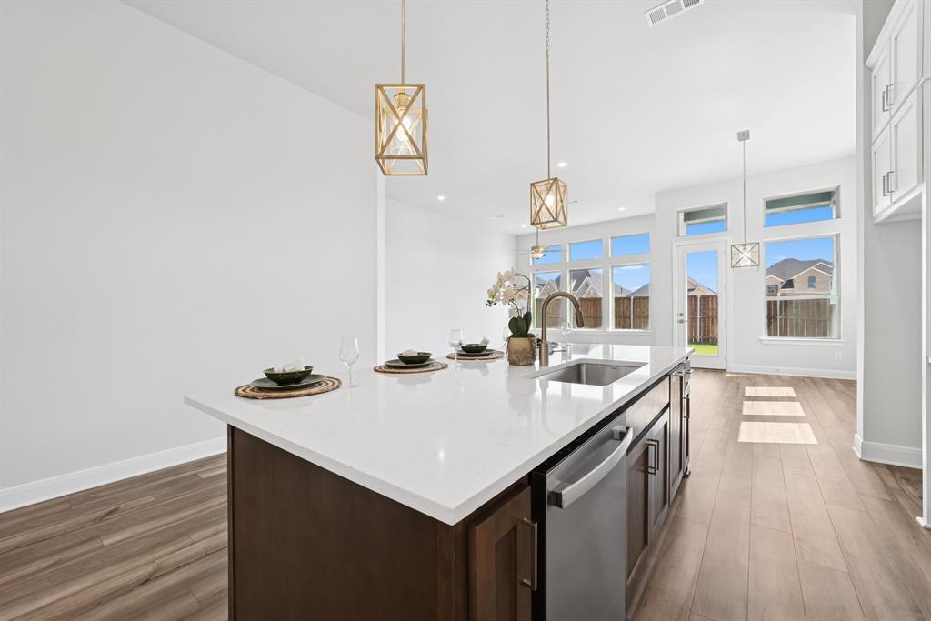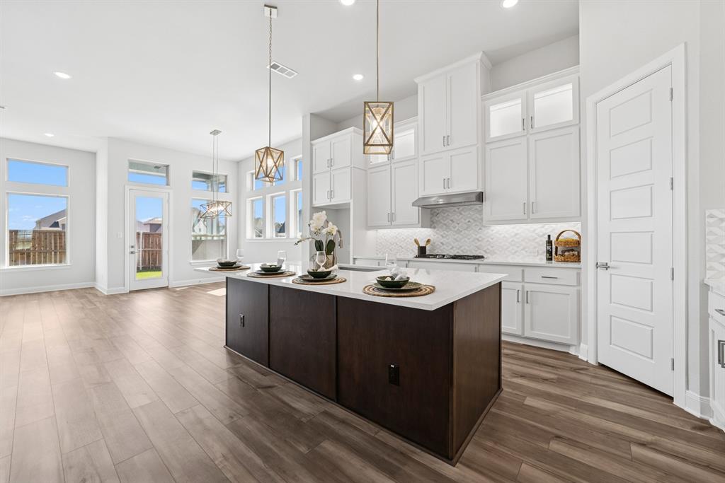 Explore new vistas of culinary delight in the streamlined kitchen, featuring a corner pantry and a presentation island. Your open floor plan provides a beautiful expanse for you to fill with decorative flair and lifelong memories. Get the most out of each day with the EnergySaver™ innovations built into every detail of this remarkable new home in Sandbrock Ranch.
