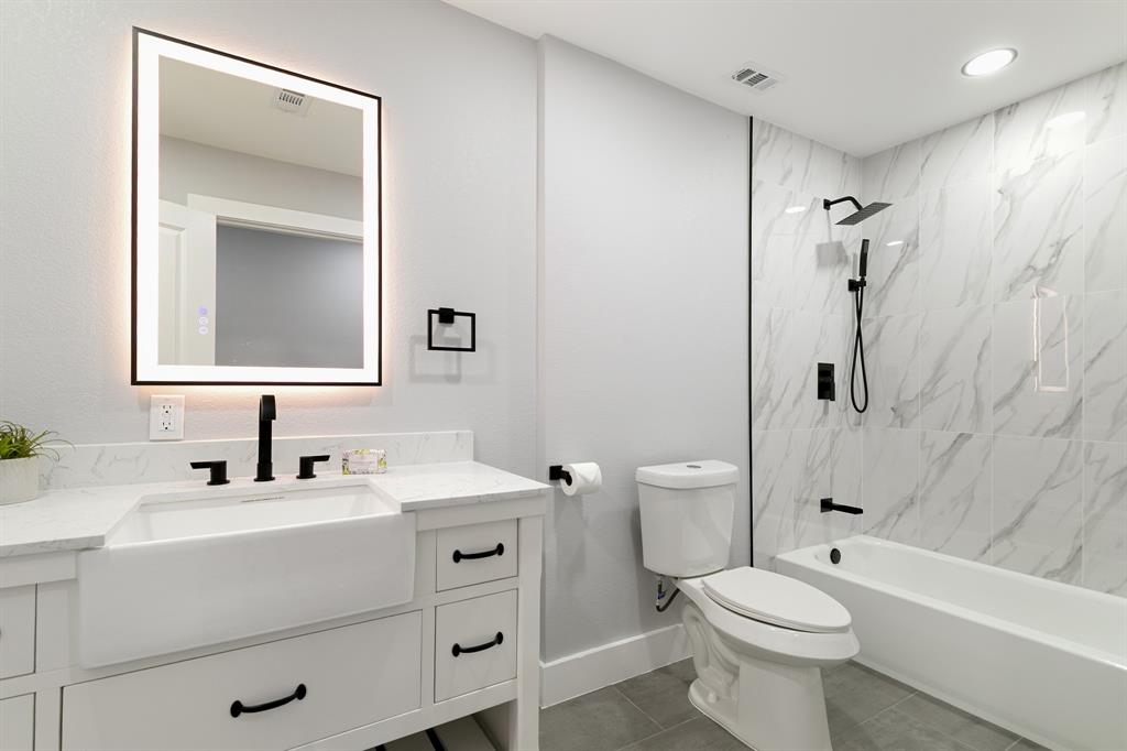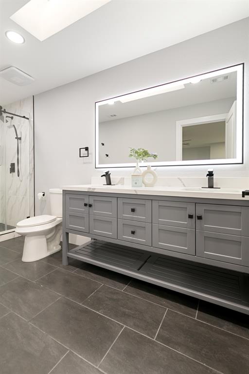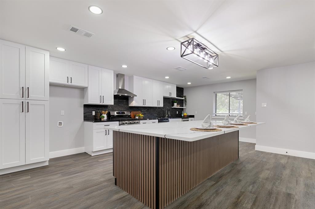 Inside, you’ll fall in love with the expansive kitchen, designed to entertain with its oversized island and sleek finishes. Skylights in the office and primary bathroom bathe the home in natural light, creating a warm and inviting atmosphere.