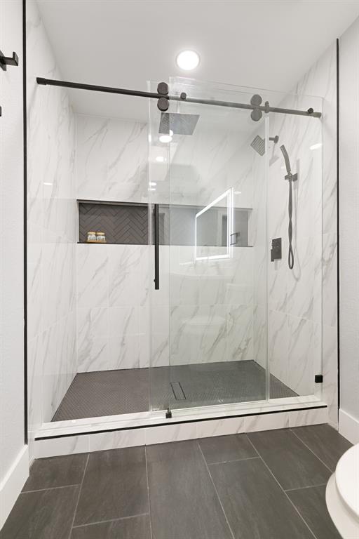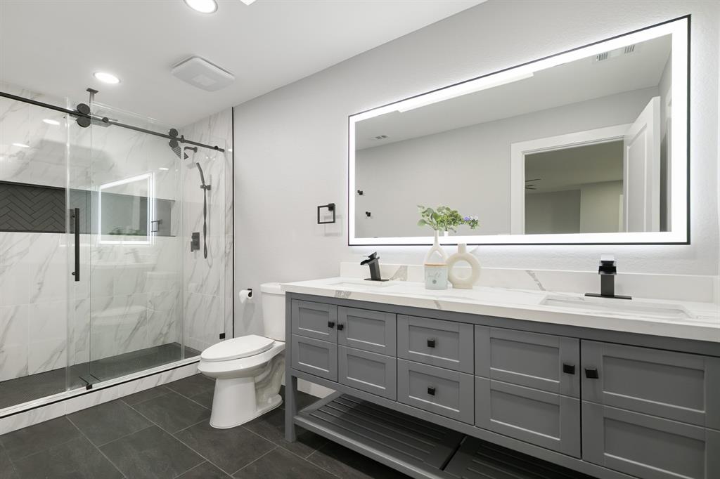 The primary suite is your personal retreat—boasting a double vanity, extended spa-style shower with a rainfall showerhead, and generous closet space throughout the home.