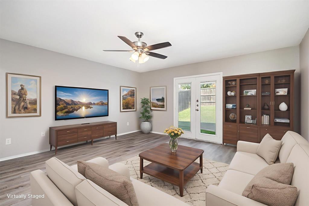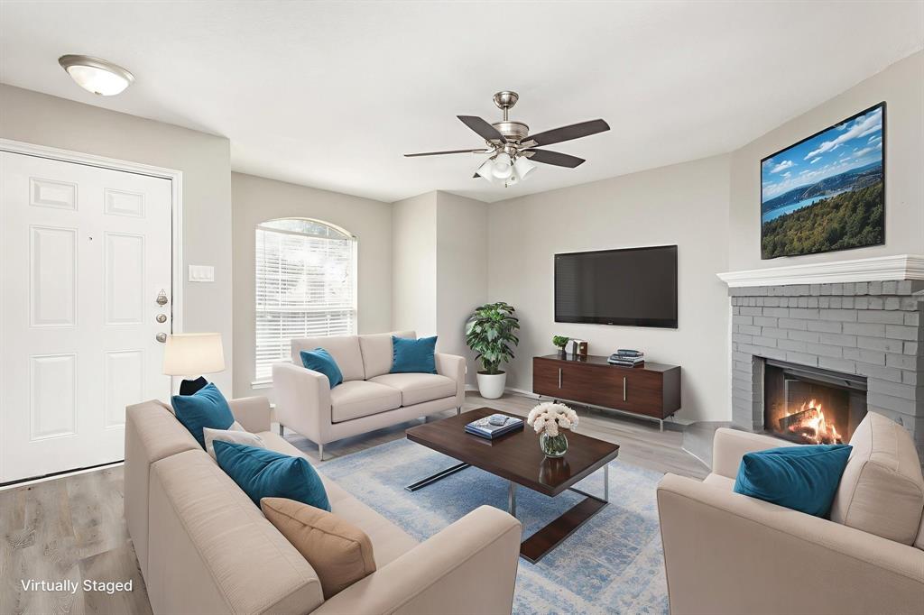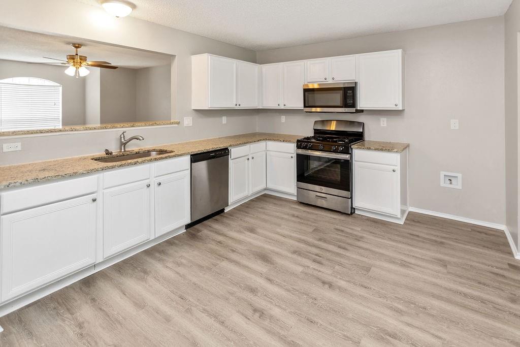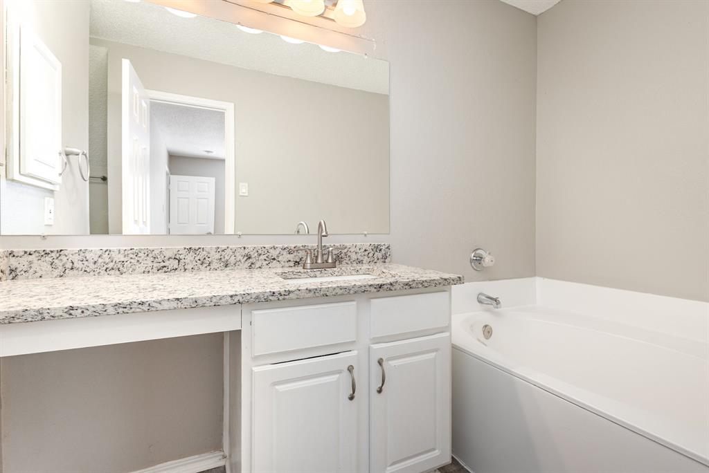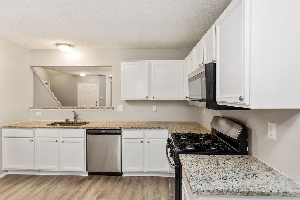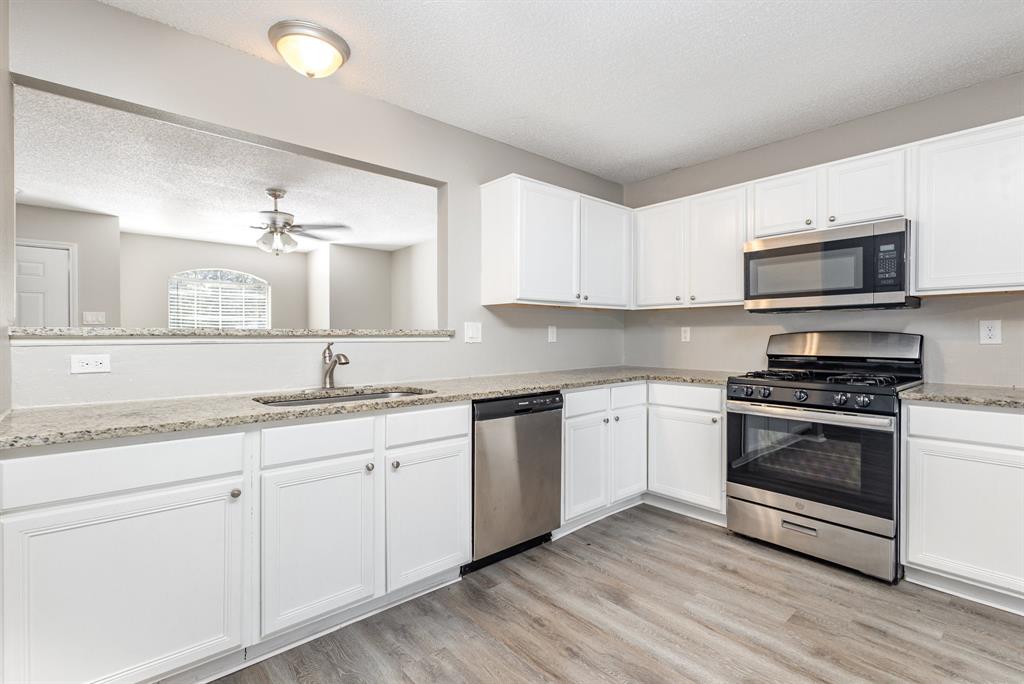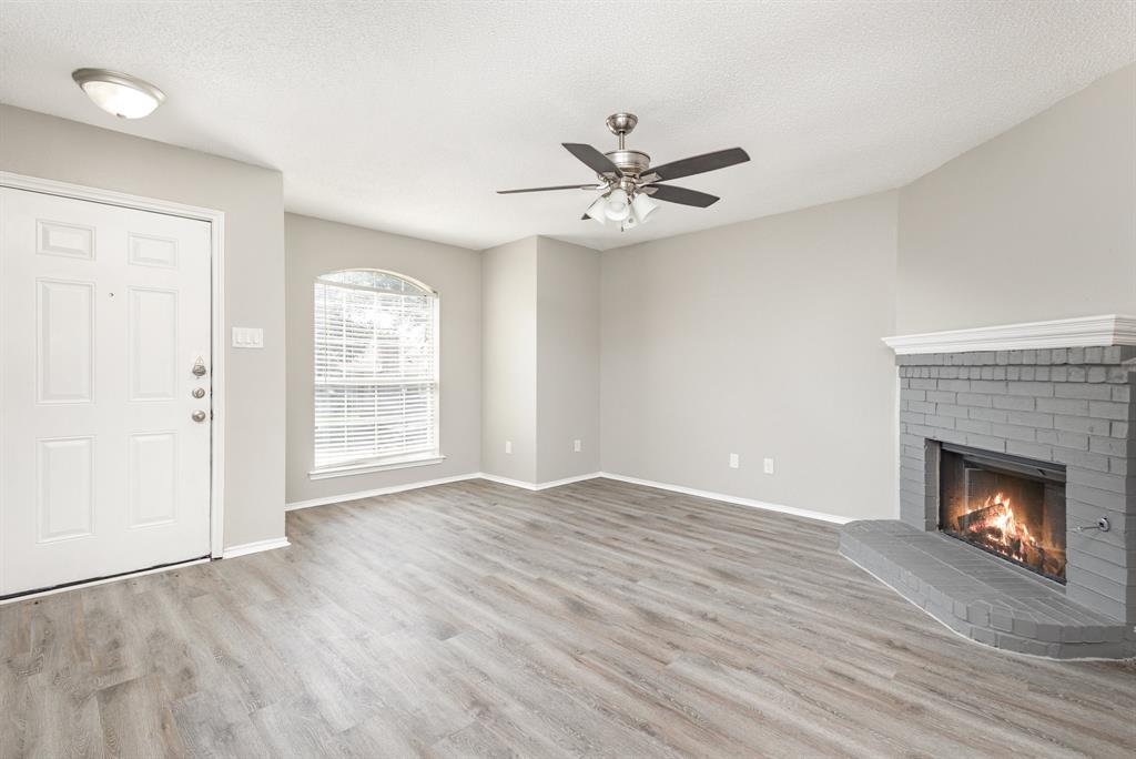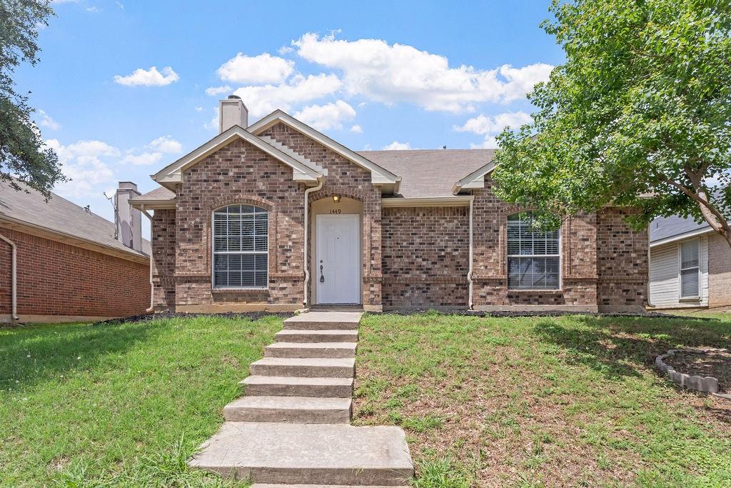 Welcome to 1449 St. Gallen in Lewisville. This brick home offers a separate living room by the front entrance with a cornered brick veneer fireplace. It opens to the eat-in kitchen. The kitchen features white cabinetry, granite counter tops, stainless steel dishwasher, microwave and gas range. The eat-in kitchen opens up to the family room. The primary bedroom is in the main floor, large vanity with counter-top and powder area space, large soaking garden tub and a separate shower. All other 3 bedrooms are upstairs with one full bath. All bedrooms have carpet and vinyl wood looking flooring the rest of the house. Located just under 3 miles to I-35 and HWY 121, giving easy access to major roads, dining and shopping options. Great opportunity!