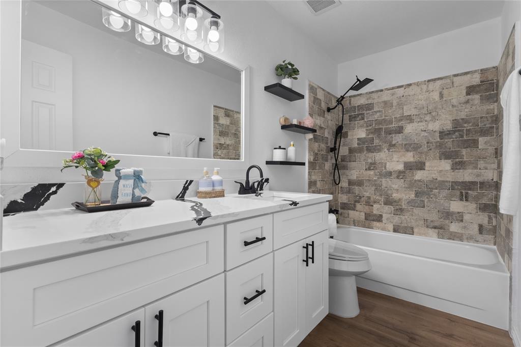Welcome to this exquisitely renovated 3-bedroom, 2-bathroom oasis, perfectly situated in the heart of Grand Prairie! This stunning home offers an open floor plan that's ideal for modern living and entertaining. Step inside and discover a meticulously updated interior where no detail has been overlooked. The gourmet kitchen is a chef's dream, boasting sparkling quartz countertops and backsplash, complemented by top-of-the-line appliances that make cooking a pleasure. Throughout the home, you'll find luxury vinyl flooring, fresh paint, updated bathrooms, new fixtures, creating a cohesive and luxurious feel. The most significant upgrades includes New Roof, Foundation Work, professionally completed and backed by an engineer's report, offering you unparalleled peace of mind and long-term stability.