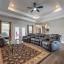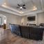 Grand living area with dramatic coffered ceilings rising to 11 feet and abundant natural light