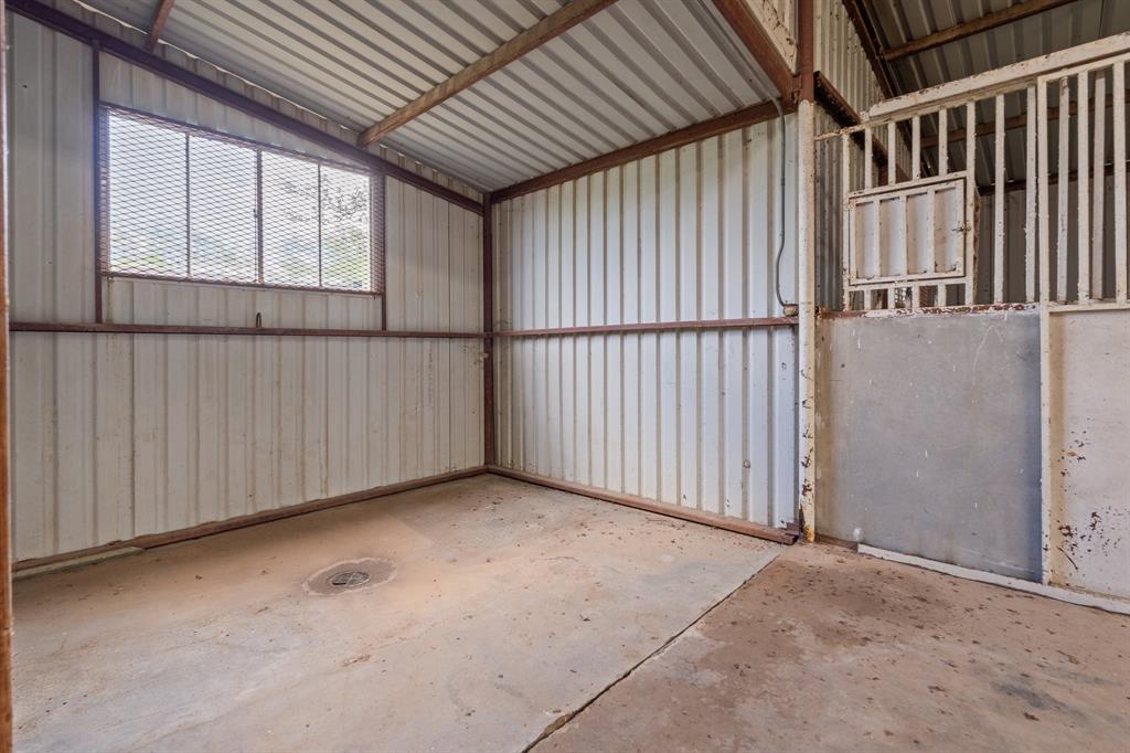 The entrance located at 681 Maddux Road has a custom entry gate, fashioned from rock and cedar, is equipped with an opener and keypad to enhance access. Additionally, you will find 45x150 of metal covered concrete storage, currently configured into twelve 12.5x45 spaces for Boat and RV storage. For livestock or equestrian needs, there's a metal barn in need of some TLC with exam rooms, four stalls featuring sliding doors, and several pens. Additionally there is a 24x24 stand alone two door garage that currently functions as additional storage space.