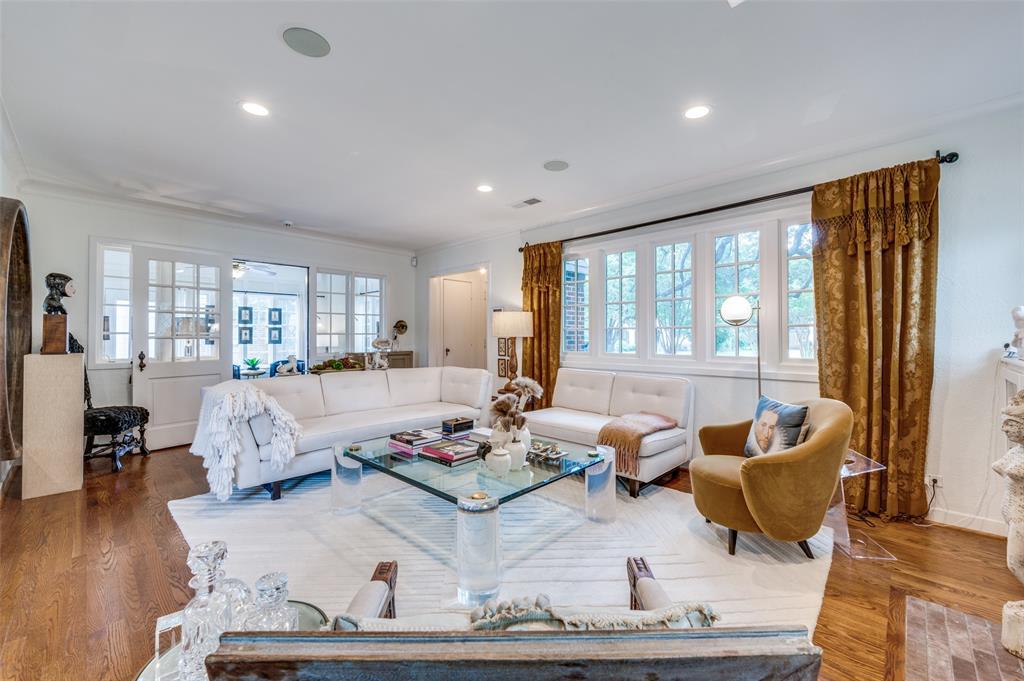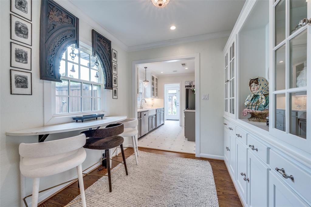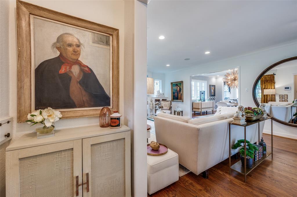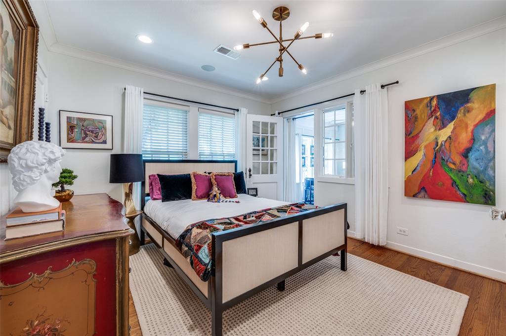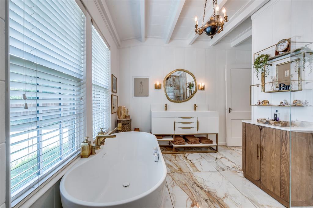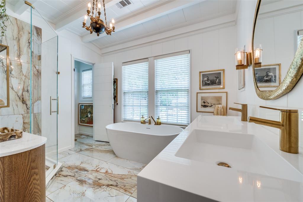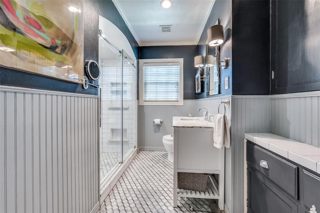 Gorgeous 1930 Tudor home seamlessly blends historic charm with contemporary luxury. Nestled in the Kessler Highlands conservation district and originally built with features not typically found in most homes, it has been beautifully updated over the years. Classic red brick exterior with stone accents and an abundance of recently installed high-end thermopane windows. The entrance hall opens to the large living room with custom lighting, grand fireplace, built-in glass front bookcases, stained-glass windows, and views of the formal dining room and cozy sunroom (which can accommodate an additional sleeping space). The kitchen, featuring a ceramic tile floor, a large pantry, high-end appliances, a farmhouse sink, glass-front cabinets, and a granite countertop, offers a view of the backyard oasis, complete with a pool, fountain, and gazebo. The oversized primary bedroom boasts a one-of-a-kind marble bath featuring the finest materials, a walk-in closet with custom shelving that maximizes storage capabilities, and a washer and dryer included with the property. Other amenities include a guest bedroom complete with a wall of custom closets, a finished garage with attic storage, a beautifully landscaped and fully sprinklered yard, and a driveway gate with an opener. Located near the Bishop Arts District, Steven Park golf course, and the Coombs Creek trails.