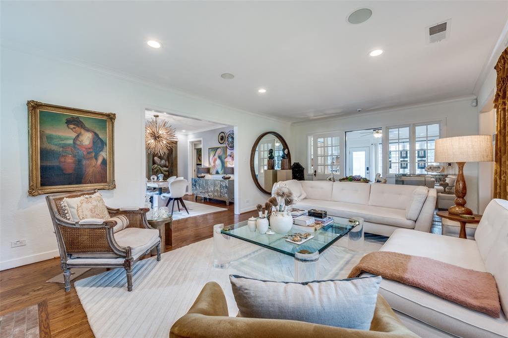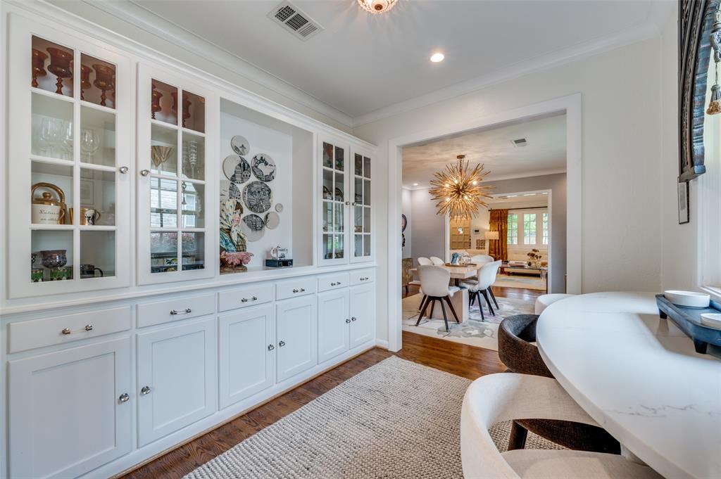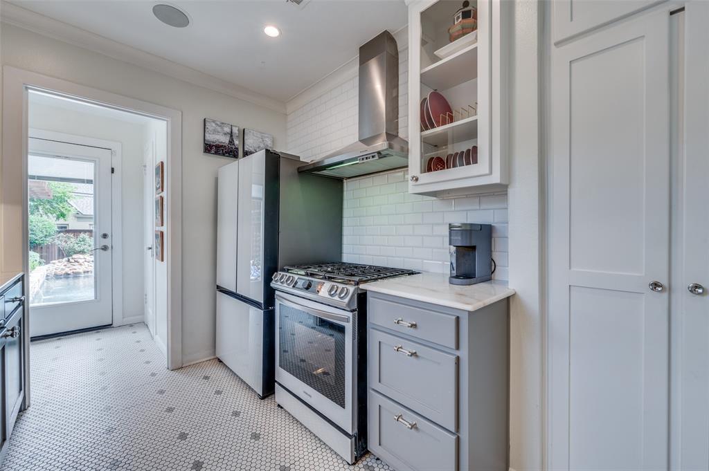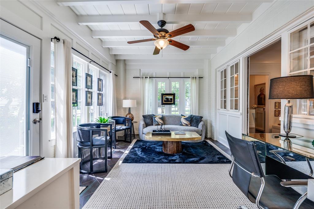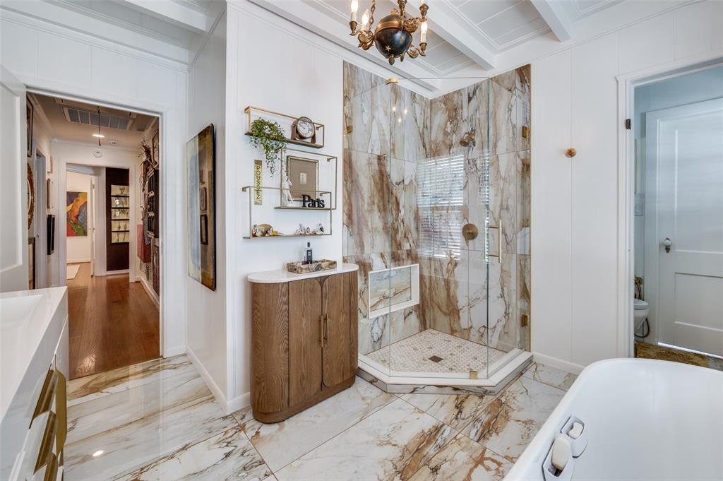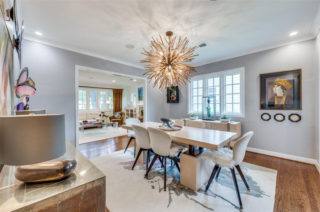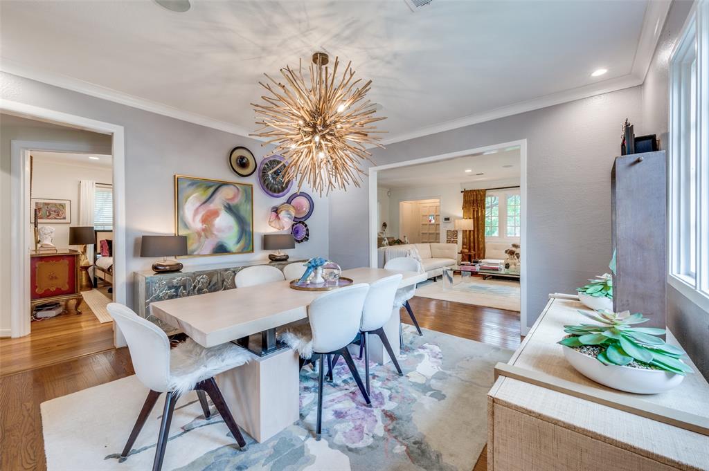 Gorgeous 1930 Tudor home seamlessly blends historic charm with contemporary luxury. Nestled in the Kessler Highlands conservation district and originally built with features not typically found in most homes, it has been beautifully updated over the years. Classic red brick exterior with stone accents and an abundance of recently installed high-end thermopane windows. The entrance hall opens to the large living room with custom lighting, grand fireplace, built-in glass front bookcases, stained-glass windows, and views of the formal dining room and cozy sunroom (which can accommodate an additional sleeping space). The kitchen, featuring a ceramic tile floor, a large pantry, high-end appliances, a farmhouse sink, glass-front cabinets, and a granite countertop, offers a view of the backyard oasis, complete with a pool, fountain, and gazebo. The oversized primary bedroom boasts a one-of-a-kind marble bath featuring the finest materials, a walk-in closet with custom shelving that maximizes storage capabilities, and a washer and dryer included with the property. Other amenities include a guest bedroom complete with a wall of custom closets, a finished garage with attic storage, a beautifully landscaped and fully sprinklered yard, and a driveway gate with an opener. Located near the Bishop Arts District, Steven Park golf course, and the Coombs Creek trails.