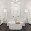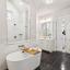 The luxurious primary suite is a true retreat, offering a spa-like ensuite bath with dual-entry walk-in shower, dual shower heads, modern stand-alone soaking tub, dual vanities including a dedicated makeup area, and a massive walk-in closet with an island and direct access to the oversized laundry room complete with built-in cabinetry, a sink, an island, and a linen closet.