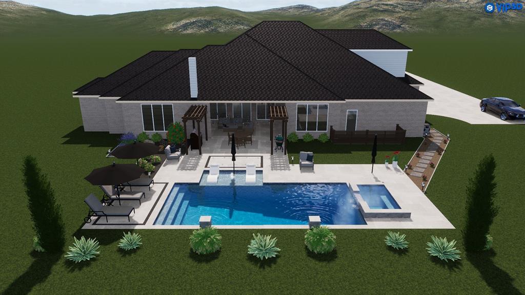 Outdoors, enjoy the expansive backyard with plenty of room to roam, play, or entertain—complete with pergolas and a covered patio with a built-in fireplace, perfect for relaxing evenings under the stars. Enjoy added privacy thanks to a landscaped berm that provides a natural barrier from neighboring properties.