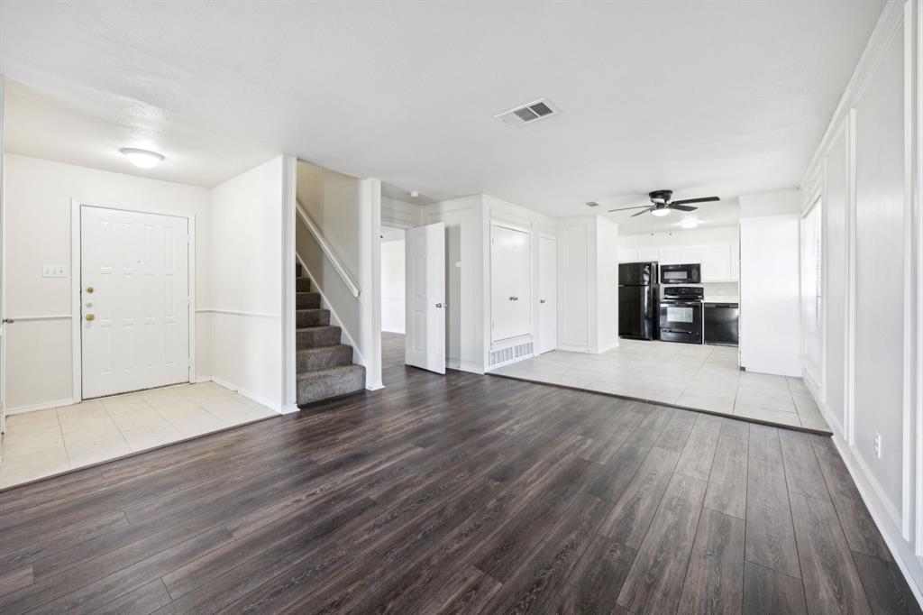 MULTIPLE OFFERS RECEIVED! BEST AND FINAL DUE SUNDAY 9.7 BY 12PM! Fantastic investment opportunity in a prime location zoned for highly rated HEB ISD! This full duplex offers one beautifully renovated side featuring wood-look flooring, neutral tones, and a spacious living room with a striking full-wall brick fireplace and mantle. The open-concept layout flows into a bright kitchen with sleek quartz countertops, crisp white cabinetry, and a cozy breakfast nook—perfect for casual dining.