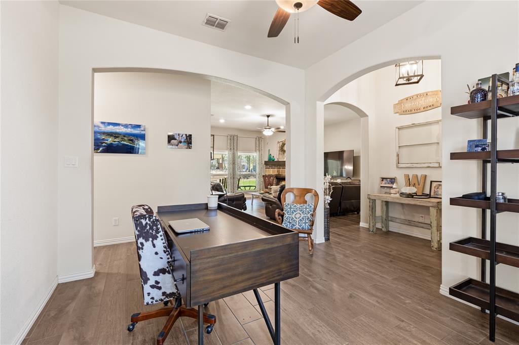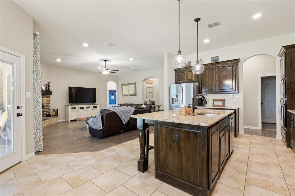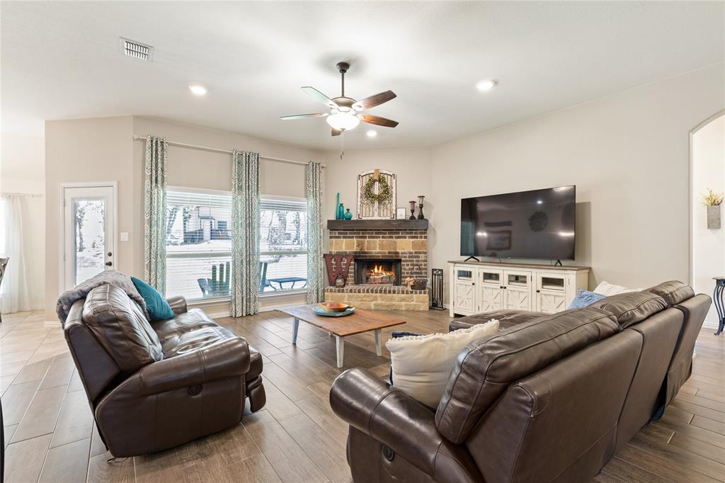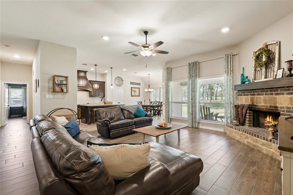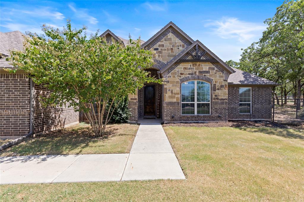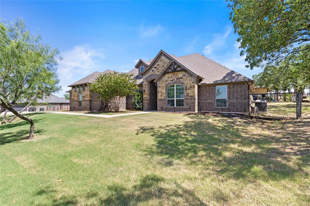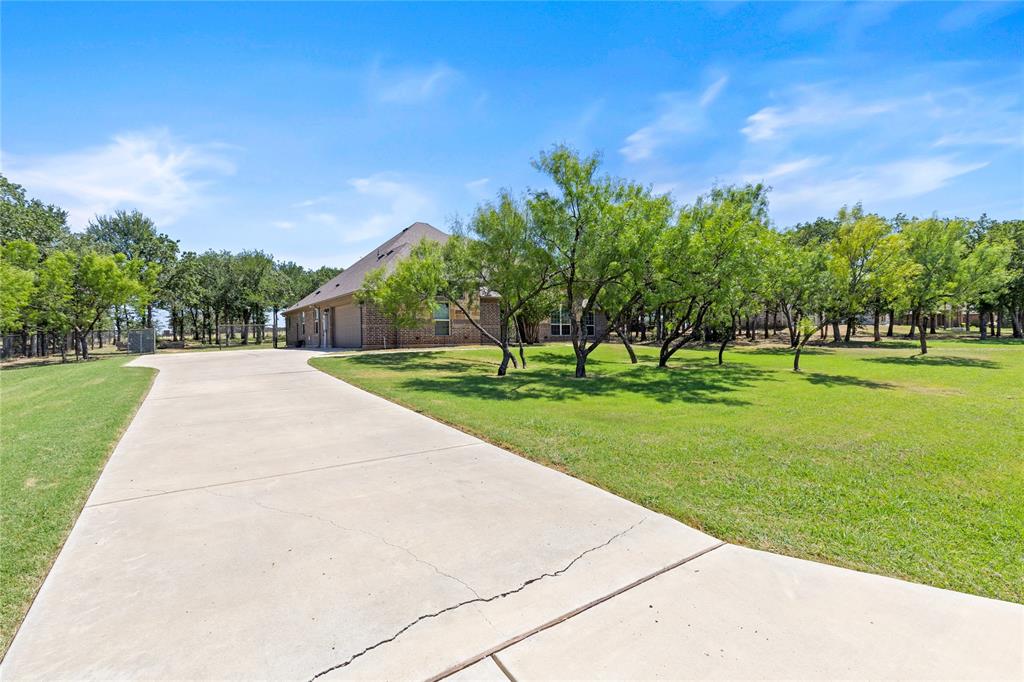 This stunning residence offers an inviting open-concept layout with a desirable split-bedroom design. Natural light fills the living spaces, highlighting beautiful designs throughout, including a cozy wood-burning fireplace. The private master suite is a true retreat, featuring a spacious en-suite bath with a soaking tub, and generous his-and-hers walk-in closets. Step outside to your own peaceful escape, situated on a heavily treed one-acre lot. This property offers privacy, serenity and countless opportunities for outdoor living. Spend the warm Texas afternoons lounging in the pool, then unwind on the covered patio while taking in the breathtaking sunsets. The enclosed 20x40 shop with attached 20x20 covered patio adds valuable storage and versatility to this already exceptional property. All of this just minutes from acclaimed Brock schools and easy access to I-20 for a quick commute.