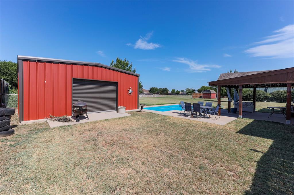 Nestled on a sprawling acre outside city limits, this 4 bedroom 2 bath home offers serene country living as you splash the summer away in your saltwater pool oasis. The expansive workshop with electricity offers endless possibilities, whether for a creative space or practical storage. This remarkable property offering no known restrictions allows you to unleash your creativity and design the life you've always envisioned, free from the limitations of HOA's or restrictive covenants. Entertain with ease in this home's open-concept family room seamlessly flowing into the dining area and kitchen. This thoughtful design allows for effortless interaction, whether you're whipping up a meal or relaxing on the couch. Hand-scraped wood floors lend a rustic yet refined touch, complemented by decorator colors that create a harmonious flow. Brand new windows throughout offers peace of mind of lower utility bills and adds a beautiful modern touch. Spacious primary bedroom with ensuite bath will help you unwind from the day, whether you enjoy a nice soaking bath in your garden tub or refresh in the separate shower. Secondary bedrooms are perfectly suited for growing families or those seeking versatile living arrangements, the secondary bedrooms offer a comfortable and functional space for every need, from a cozy child's room to a productive home office. While remaining in the more peaceful solitude of country living you are only a short drive to shopping, restaurants, and entertainment. This convenient location is also close to 2 major freeways for easier commutes.