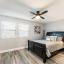Both bathrooms showcase stylish tile work and contemporary vanities. Enjoy natural light through new windows and a sliding glass door that opens to your private patio with relaxing pool views. A built-in laundry area adds everyday functionality.