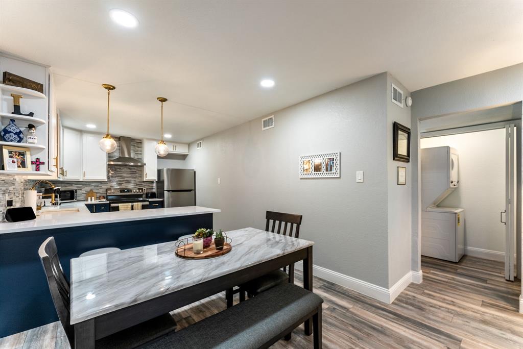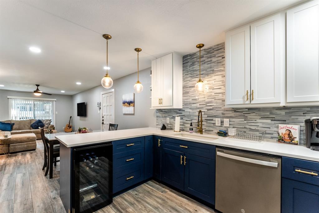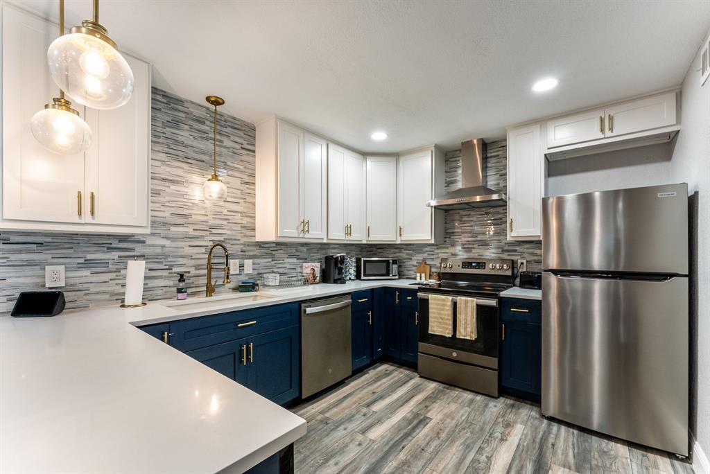 This beautifully updated poolside condo is the perfect blend of style and convenience. Step into a custom kitchen featuring quartz countertops, luxury slate appliances, and a built-in wine cooler—ideal for everyday living and entertaining. The open layout is enhanced by elegant flooring throughout (no carpet), modern lighting, designer paint, updated doors—including sleek barn doors—and upgraded baseboards.