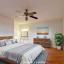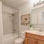 Both bathrooms have been tastefully updated with modern finishes such as large-format wall tiles, modern lighting, and stylish vanities. The secondary bathroom offers a new tub, while the primary bathroom boasts a walk-in shower. All of the bedrooms include ceiling fans, and one secondary bedroom features sleek track lighting and has adjustable fixtures, allowing for customizable illumination.
