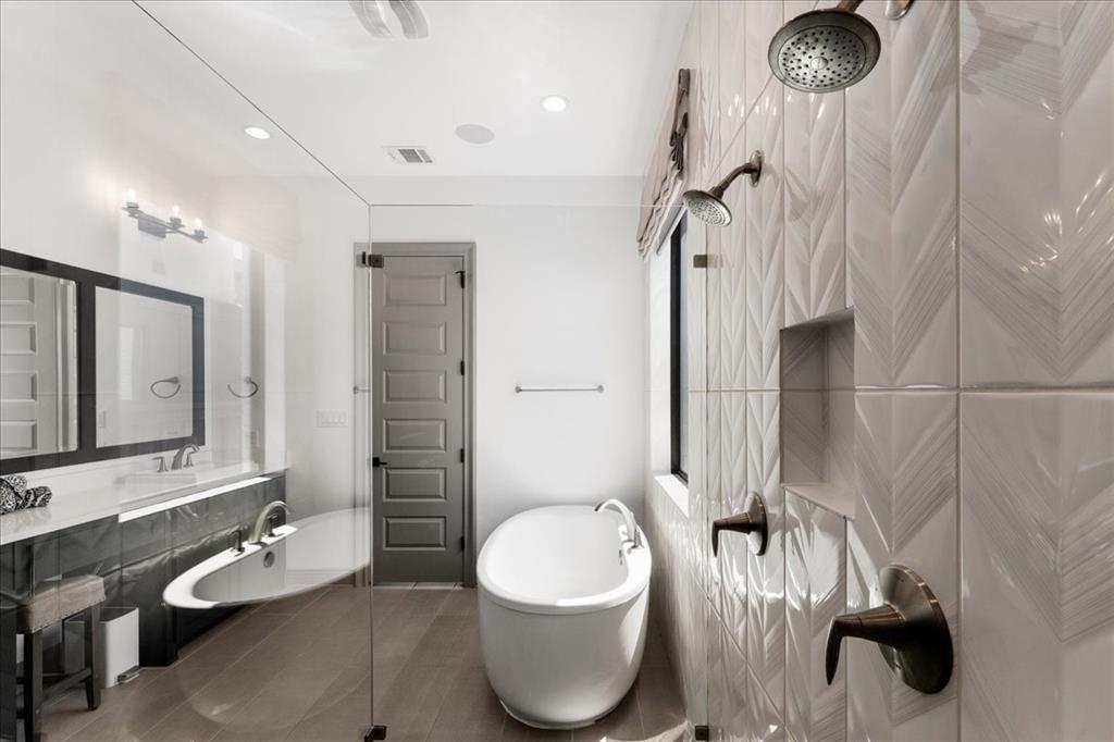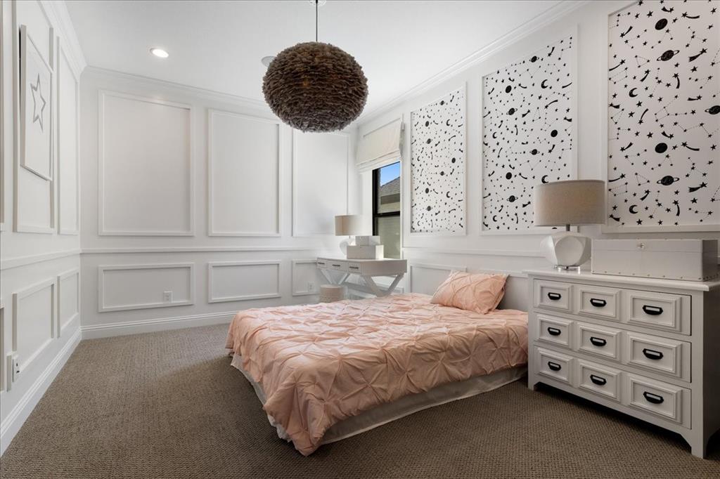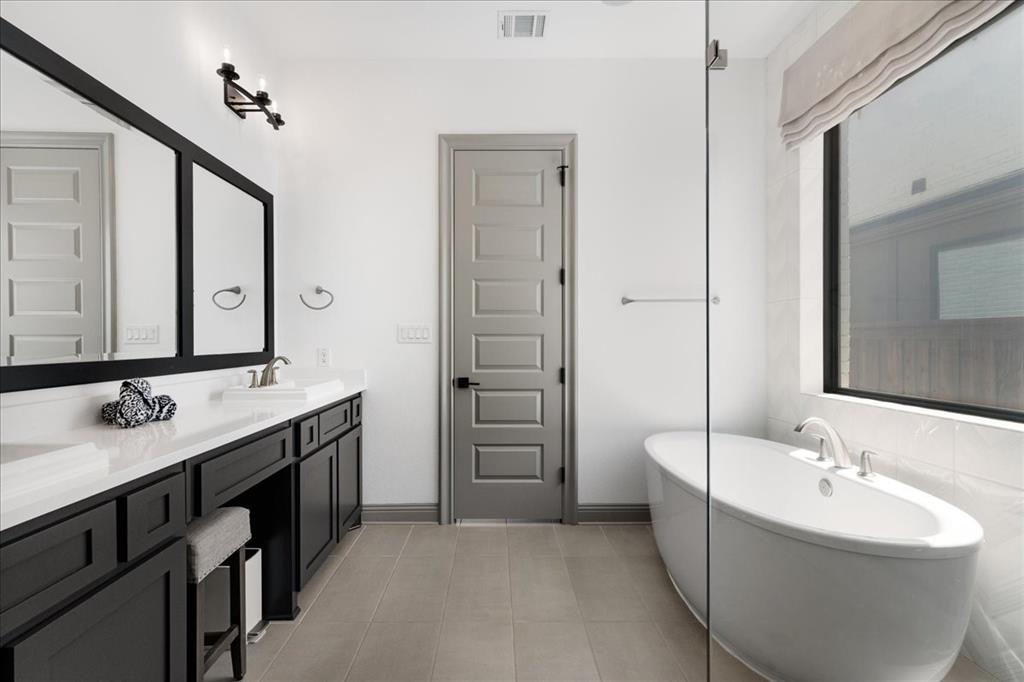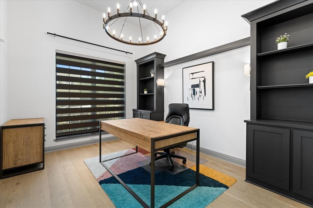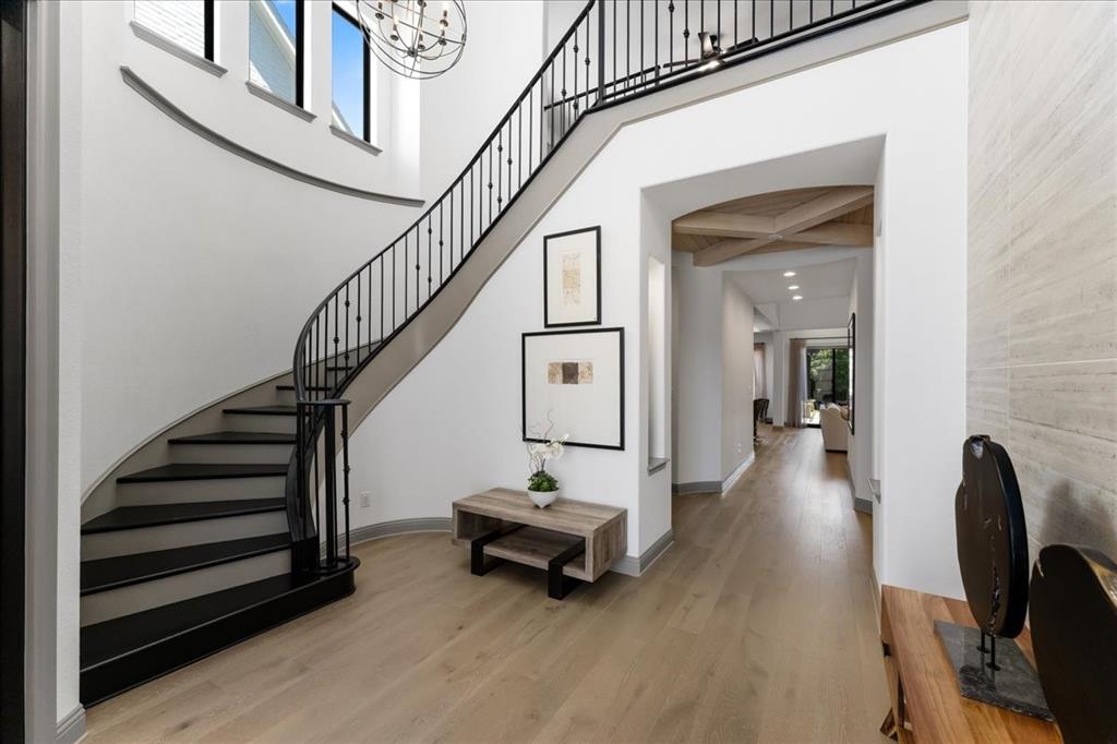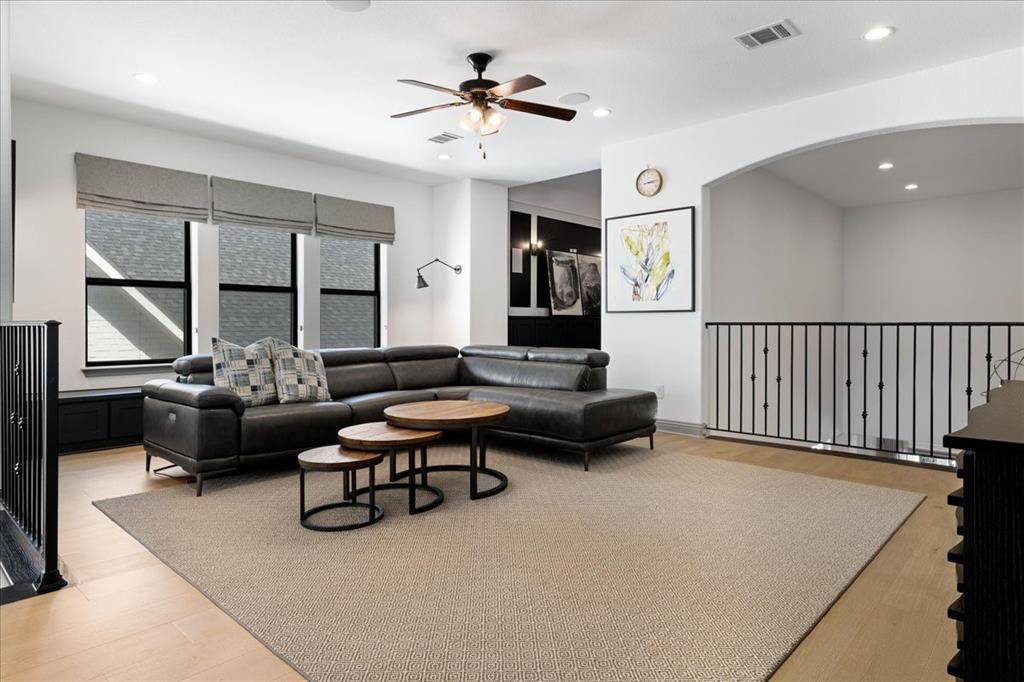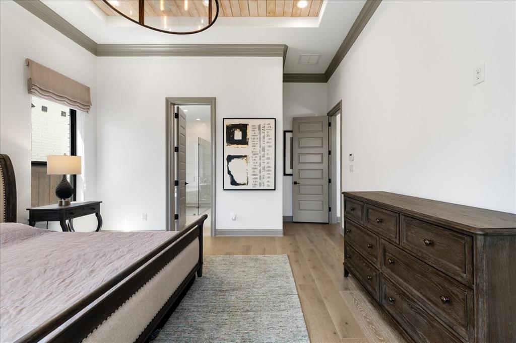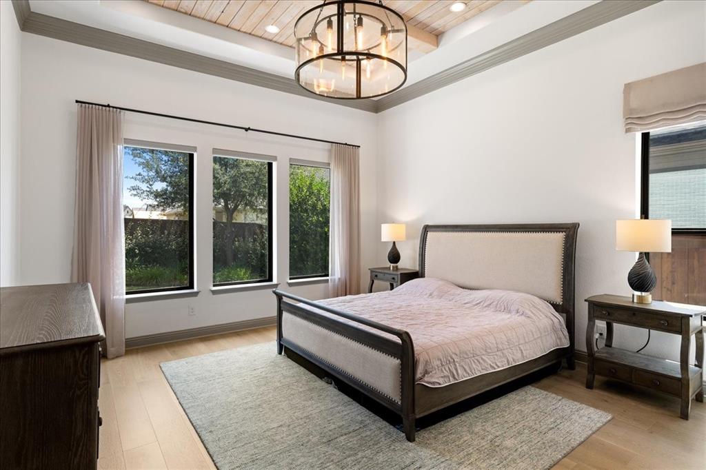 Welcome to this exceptional 4-bedroom, 3.5-bath home, previously showcased as a Toll Brothers model home in a highly desirable, family-friendly neighborhood. From the moment you enter, you’re greeted with soaring ceilings, a dramatic floor-to-ceiling tile fireplace, and a gallery-style accent wall that adds refined character to the living space. The gourmet kitchen is a true centerpiece, featuring an oversized island, built-in refrigerator, commercial-grade vent hood, custom two-tone cabinetry with upper display lighting, and abundant storage. The adjacent dining area offers modern open shelving and designer fixtures—perfect for everyday living and entertaining. Step outside to enjoy Texas-style outdoor living under a custom pergola with a built-in stone kitchen, stainless steel grill, beverage fridge, and elegant stone pavers surrounded by lush landscaping—ideal for relaxing or hosting guests. Located in a peaceful and well-maintained community, this home offers quick access to top-rated schools, major highways, shopping, dining, and local parks. It’s a rare opportunity to own a move-in ready home blending luxury, comfort, and convenience.