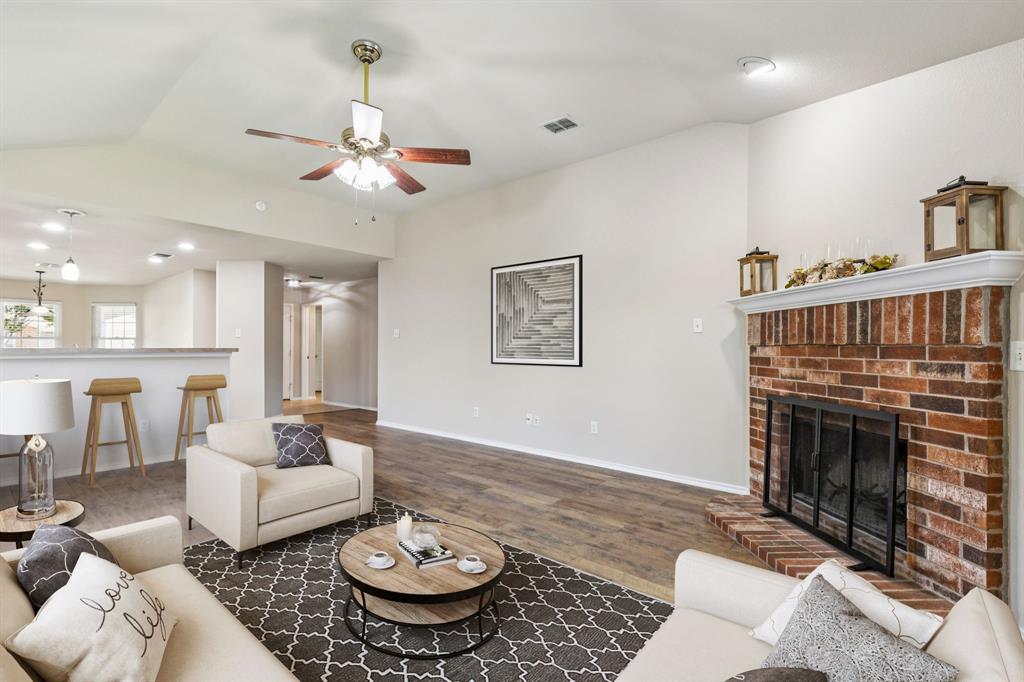 Welcome home to comfort, style, and convenience—all in one beautiful freshly painted package! This home offers a perfect blend of charm, thoughtful upgrades, and practical design. From the moment you arrive, you'll appreciate the care and attention to detail that sets this home apart. The spacious, open-concept layout is ideal for both relaxing and entertaining. A welcoming Great Room features vaulted ceilings and a cozy corner fireplace, creating a warm, airy atmosphere. Flowing seamlessly into the kitchen, complete with an island and breakfast bar—ideal for everyday living and hosting guests. Just off the kitchen, the dining area boasts a beautiful bay window overlooking the front porch, bathing the space in natural light and offering a lovely spot for meals. Retreat to the bedrooms where they are thoughtfully separated from the main living areas, providing comfort and privacy. Step outside to your covered patios—great for unwinding in the evenings—or take advantage of the patio extension for weekend cookouts and gatherings. The spacious backyard offers room to play, garden, or simply relax, with a storage shed for tools, lawn equipment, or hobbies. The privacy fence extends along both sides of the home, with gates for added convenience and security. Additional features include extra attic insulation for energy efficiency and a floored garage attic providing space for extra storage. Enjoy small-town charm with modern convenience in a community filled with amenities: tree-lined streets, two sparkling pools, playgrounds, green spaces with spacious layouts, and catch-and-release fishing at Tannery Lake. Ideal for outdoor recreation or social events. Live the suburban lifestyle with accessibility to major highways, shopping, dining, and entertainment. And .4 miles or 2min. drive or 8min. walk to take the kids to Cross Oak Elementary. Whether you're biking, jogging, walking along the scenic trails, or simply relaxing on your front porch, you’ll feel right at home here.
