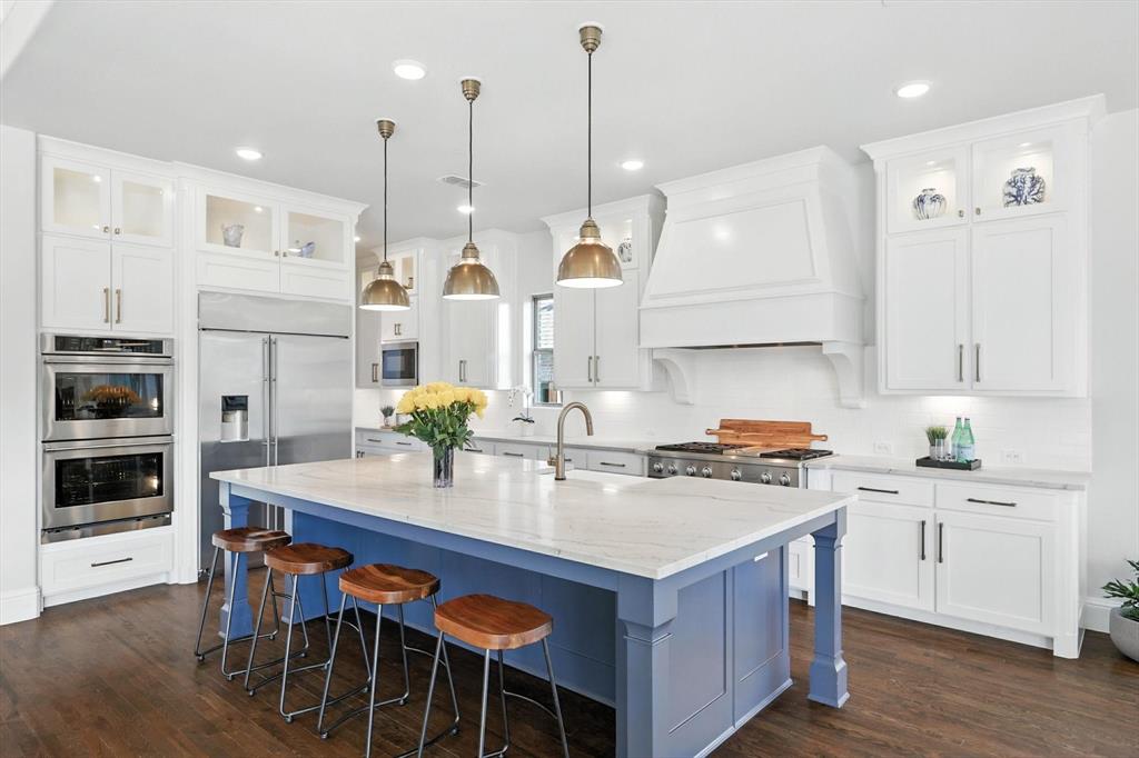 Upon entering, you're greeted by a spacious and inviting atmosphere, featuring high ceilings and warm hardwood floors that expand through the first floor. The seamless flow from the living areas to the kitchen, make entertaining easy. The heart of the home is unquestionably the gorgeous, bright, gourmet kitchen, designed to inspire culinary creativity. This chef's dream features top of the line appliances, double ovens, and an oversized kitchen island, making it an ideal space for hosting gatherings.