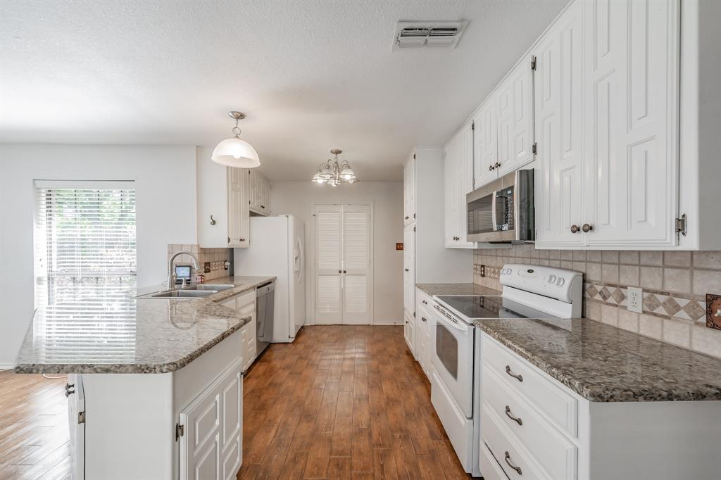 One story custom built home in a highly desirable neighborhood, full of charm and curb appeal. This lovingly maintained home features an updated kitchen with granite countertops, wood-look tile flooring, and a cozy breakfast area. The spacious floorplan includes two separate living areas, a formal dining room, 2.5 bathrooms, and a generously sized primary suite with a large walk-in closet. The secondary living area includes a half bath and offers a perfect setup for generational living, guest quarters, playroom or a private home office. Thoughtful design provides a substantial amount of storage throughout, making the home both functional and elegant. The beautifully landscaped yard is shaded by mature trees, creating a peaceful and serene outdoor setting, ideal for relaxing or entertaining. A timeless home in a prime location that’s ready for its next chapter! Close to top rated schools, parks, walking trails, shopping, dining and more! 1-0 lender paid buydown with preferred lender on this home to help save on monthly payments for your first year! The cherry on top is your roof is only 2 years old ($ savings for insurance), HVAC is new, and the flooring is new!