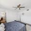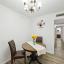 The functional layout includes a combined living and dining space, while the kitchen provides direct access to a covered patio, an ideal spot for outdoor seating. The kitchen also offers ample cabinetry and workspace. Both bedrooms offer natural light and closet space, and the primary bedroom includes a private ensuite bath.