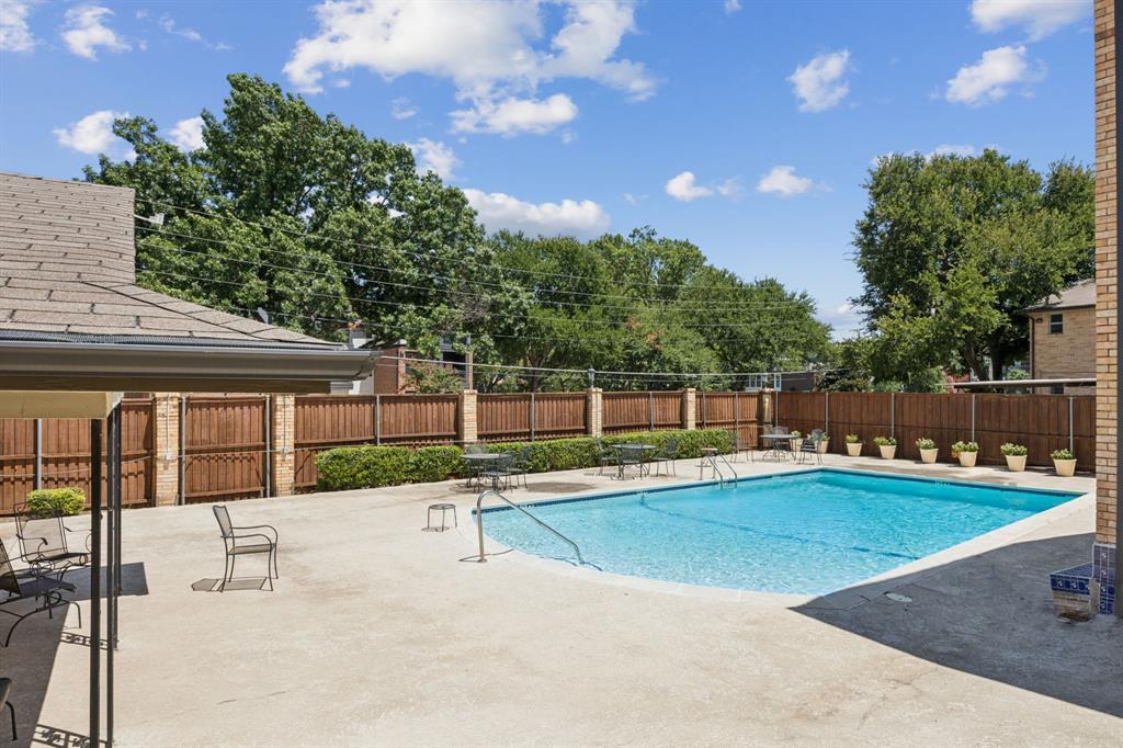 Community amenities include a swimming pool and landscaped grounds. The property is conveniently located near SMU, Mockingbird Station, and major thoroughfares, offering easy access to shopping, dining, and public transit.