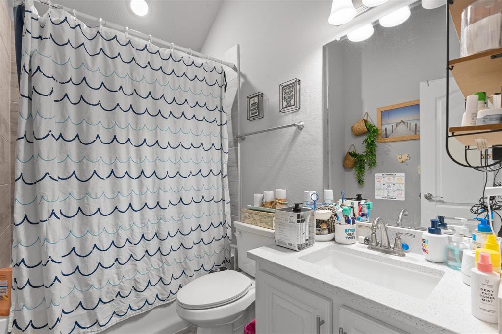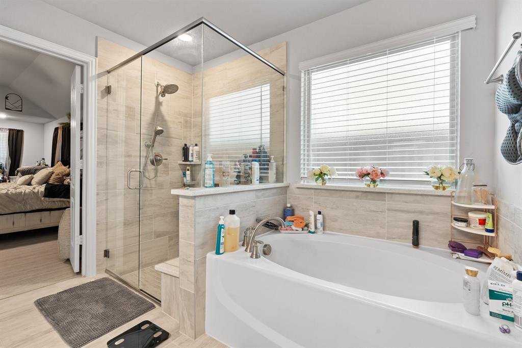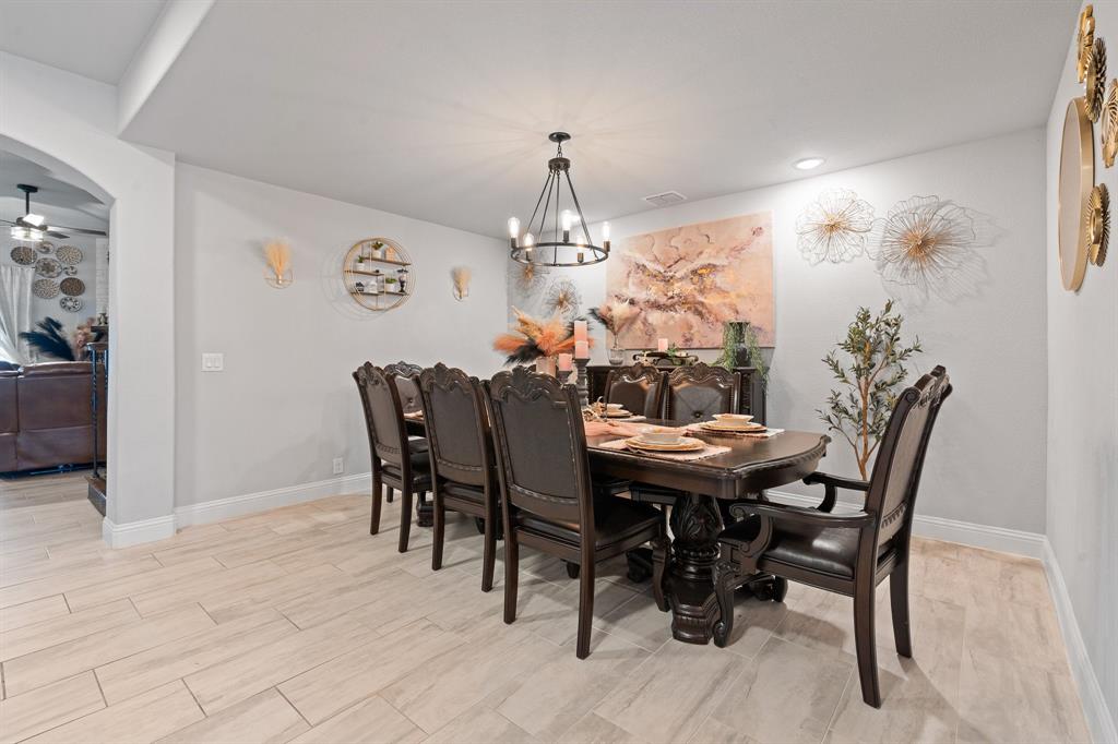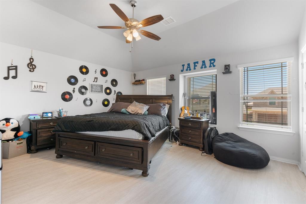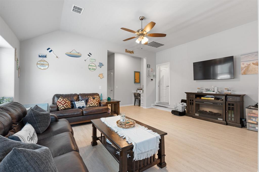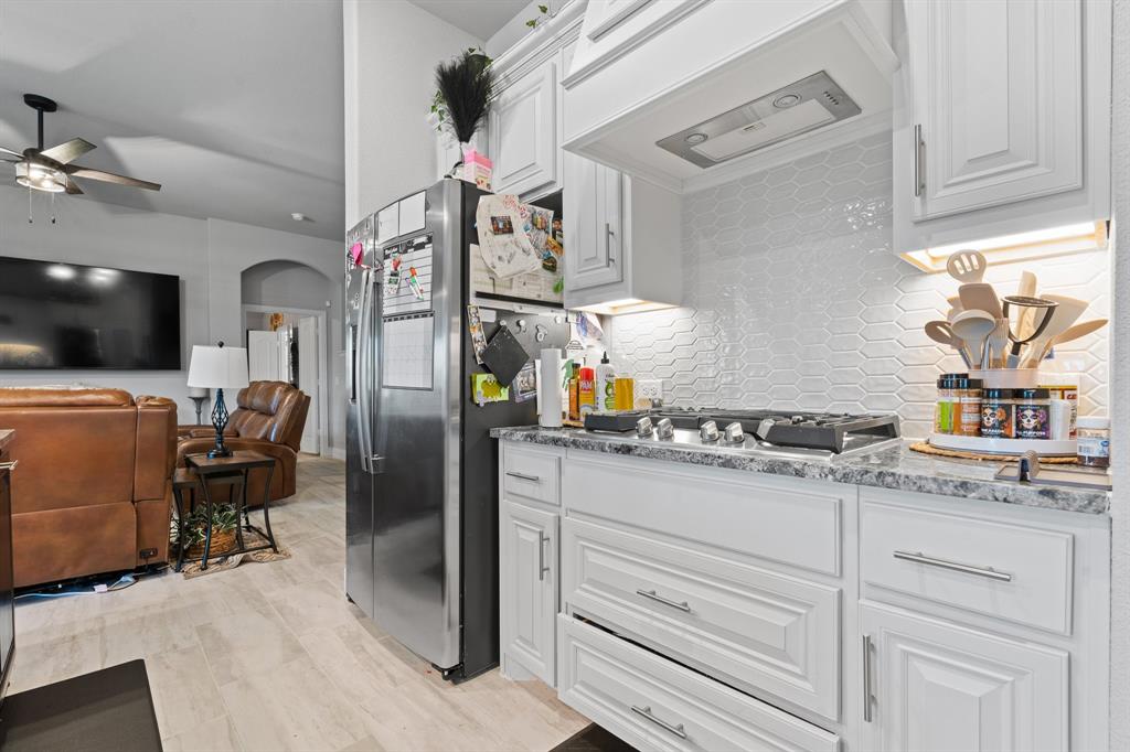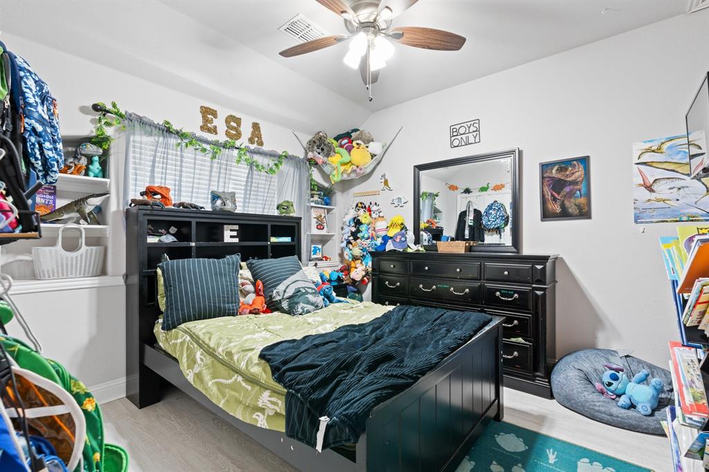 Welcome to 505 Livia Street, a stunning Bloomfield-built home nestled in the sought-after Parks at Panchasarp Farms community of Burleson, TX. Built in 2023 and backing to a peaceful greenbelt, this 5-bedroom, 3.0-bath home offers 3,291 square feet of luxurious living space designed for comfort, style, and functionality. Step through the elegant 8-foot mahogany front door into a rotunda-style entry that opens into an expansive open-concept living area. The chef’s kitchen is a standout with exotic granite countertops, stainless steel appliances including double ovens and a gas cooktop, a vented hood, and abundant cabinetry. Designer flooring, a stacked-stone fireplace, quartz countertops in the bathrooms, and thoughtfully integrated built-ins add a layer of sophistication throughout. The spacious primary suite is located on the main floor and features dual vanities, a garden tub, separate shower, large walk-in closets, and a private sitting area. Upstairs, enjoy a generously sized game room and a dedicated media room—perfect for family nights or entertaining guests. Outside, a covered patio with accent lighting overlooks a fenced backyard with direct access to the scenic greenbelt, providing a peaceful retreat for outdoor enjoyment. Located in highly rated Joshua ISD, with convenient access to schools and shopping, this home offers the perfect blend of upscale finishes and everyday livability.