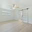 Down the hall, you’ll find the fourth bedroom or office overlooking the backyard, a half bathroom, and a spacious laundry room equipped with white cabinetry.