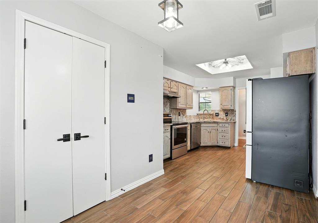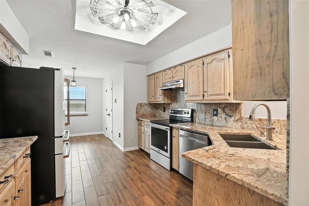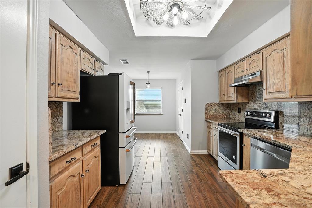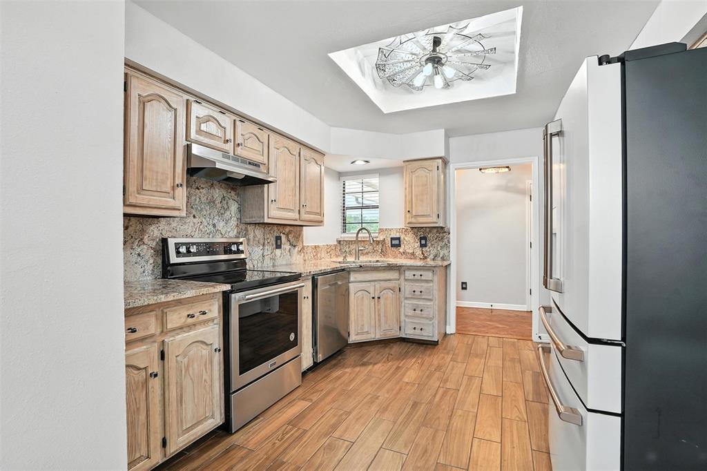 The kitchen is equally impressive with granite countertops, stainless steel appliances, ceramic tile flooring, and a walk-in pantry. Both bathrooms have been thoughtfully renovated, including the secondary bath with an updated tiled shower, granite vanity, linen closet, and tile floors.